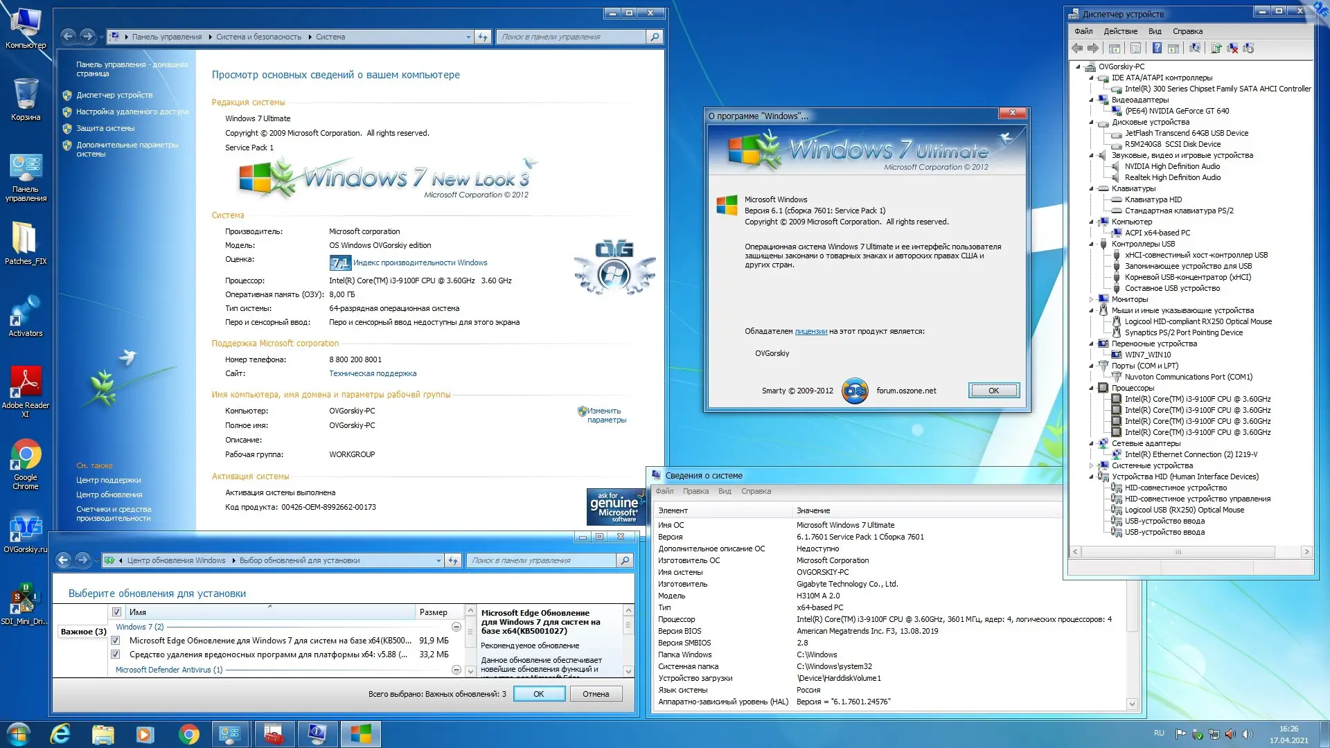 - Предустановлены Google Chrome 90, WinRAR 6.00, .NET Framework 4.8.2, Java 8u281, Adobe Reader XI