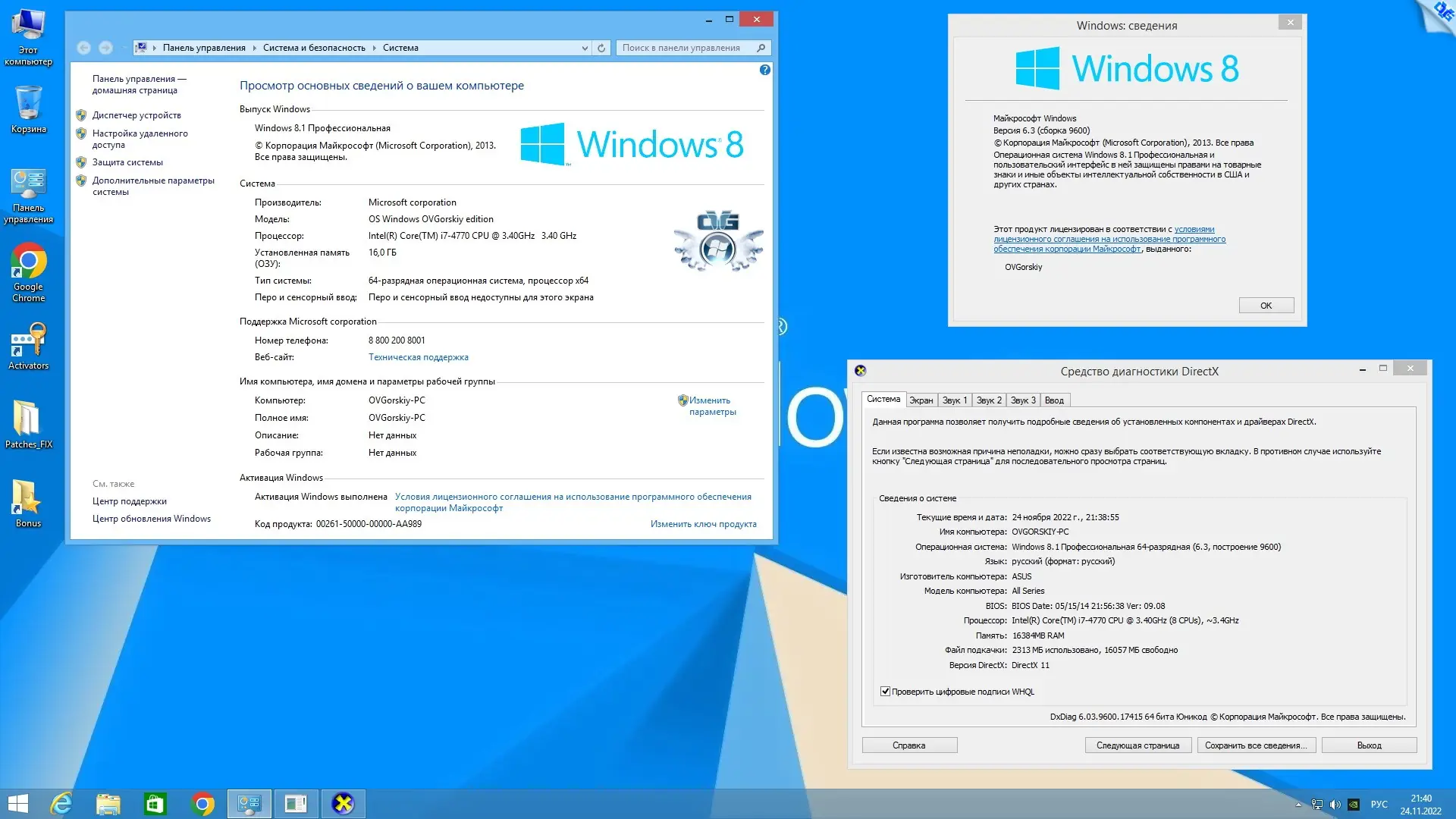 - Предустановлен браузер Google Chrome как замена устаревшему Internet Explorer 11.