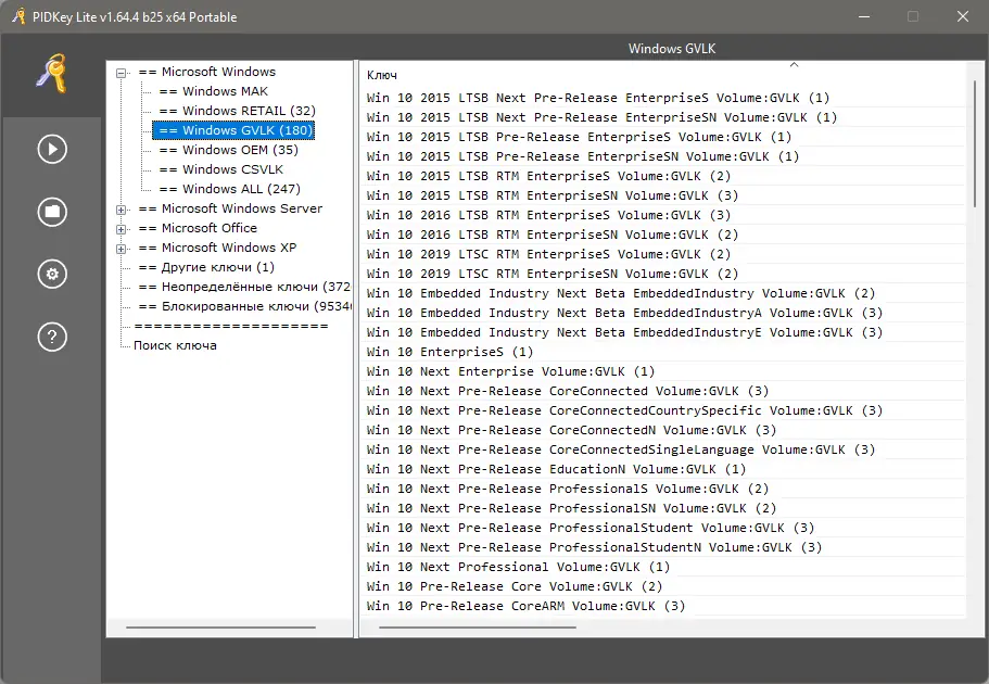 PIDKey Lite — это утилита для управления, просмотра и хранения ключей активации продуктов Microsoft. Программа поддерживает создание SQL-базы данных, позволяет обновлять сведения о лицензиях и организовывать их в удобной структуре. Она пригодится системным администраторам и обычным пользователям, которым необходимо централизованно управлять лицензионной информацией.