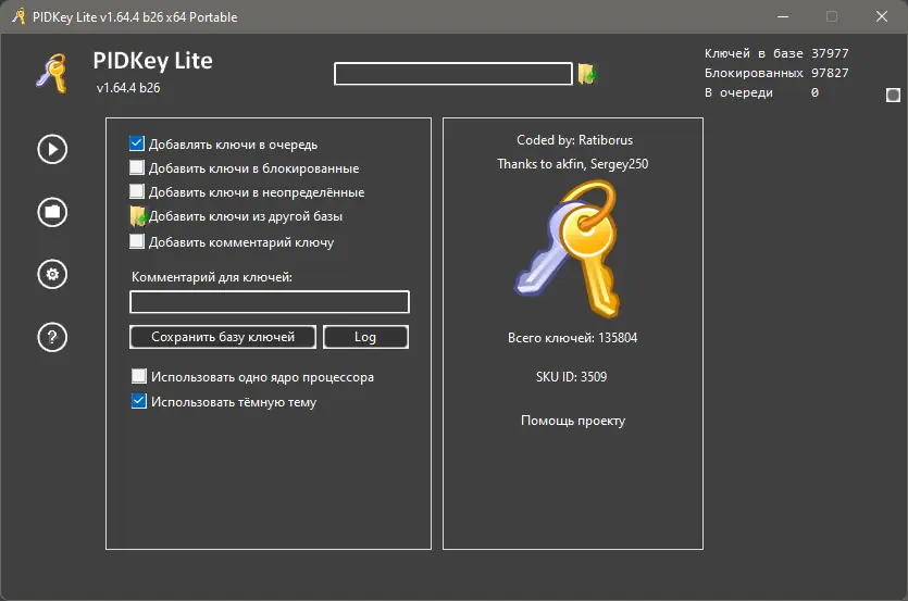 PIDKey Lite предлагает современный подход к управлению лицензиями, сочетая простоту интерфейса с расширенными возможностями. Программа развивает идеи предыдущей версии, устраняя устаревшие элементы и добавляя новые функции. Поддержка темной темы на актуальных версиях Windows улучшает восприятие при длительной работе. Утилита не требует установки и может использоваться в портативном режиме, что повышает её мобильность. В то же время, функционал остаётся сфокусированным на основной задаче — управлении ключами, без избыточных опций.