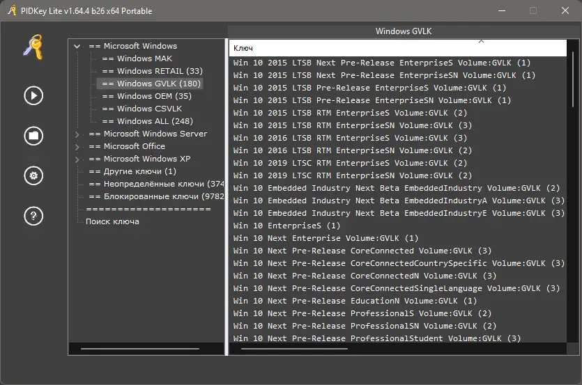 PIDKey Lite — это утилита для управления, хранения и проверки лицензионных ключей продуктов Microsoft. Программа поддерживает работу с базой данных ключей, позволяет обновлять информацию и искать необходимые записи. Она подходит как для личного, так и для корпоративного использования, обеспечивая удобный доступ к лицензиям.