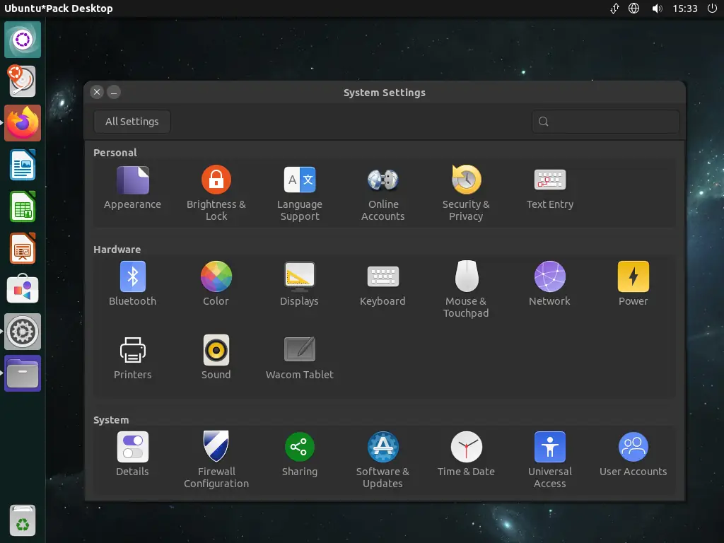 Интерфейс Unity обеспечивает удобное и современное взаимодействие с системой, объединяя элементы классического рабочего стола и сенсорных устройств. Пользователи могут легко запускать приложения, управлять окнами, настраивать рабочий стол и переключаться между задачами. Система поддерживает touch-экраны с возможностью калибровки, что особенно полезно при использовании на планшетах или гибридных устройствах. Для настройки параметров безопасности доступна графическая утилита управления брандмауэром, а для резервного копирования и восстановления используется TimeShift. Процесс установки занимает минимальное время благодаря предварительно включённым компонентам, включая драйверы для принтеров HP, Canon и Epson, а также библиотеки OpenGL для работы с 3D-графикой. Утилита Boot Repair помогает восстановить загрузочную запись в случае сбоев, а R-Linux позволяет восстанавливать случайно удалённые файлы.