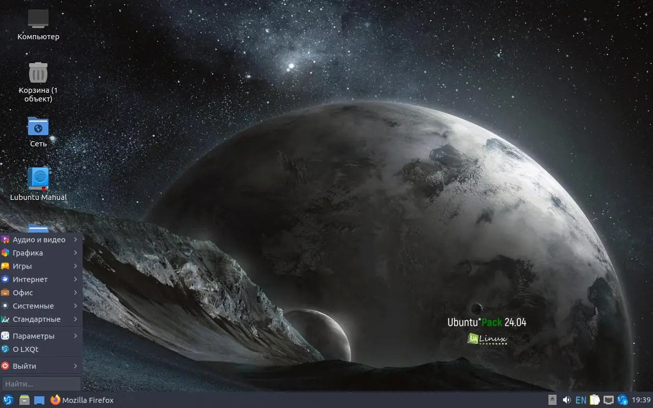 Ubuntu — это стабильный и безопасный дистрибутив операционной системы Linux, созданный на базе Ubuntu 24.04 LTS. Версия поставляется с графической оболочкой LXQt, которая отличается минимальными требованиями к ресурсам — для её запуска достаточно 256 Мб оперативной памяти. Это делает дистрибутив пригодным для установки на устаревшее оборудование, а также идеальным решением для предустановки на новые компьютеры. Операционная система полностью локализована на русский, украинский и английский языки, что обеспечивает комфортное взаимодействие для пользователей из разных регионов. Все необходимые приложения уже включены в образ, включая средства для работы с документами, мультимедиа, интернет-сервисами и безопасностью.