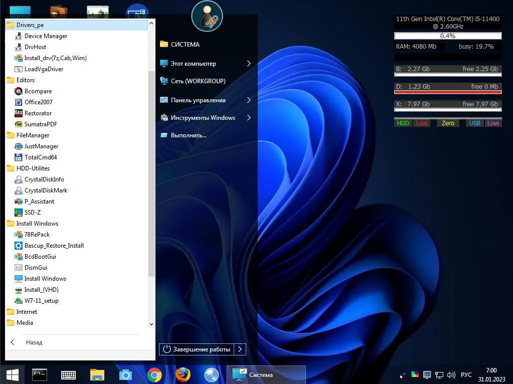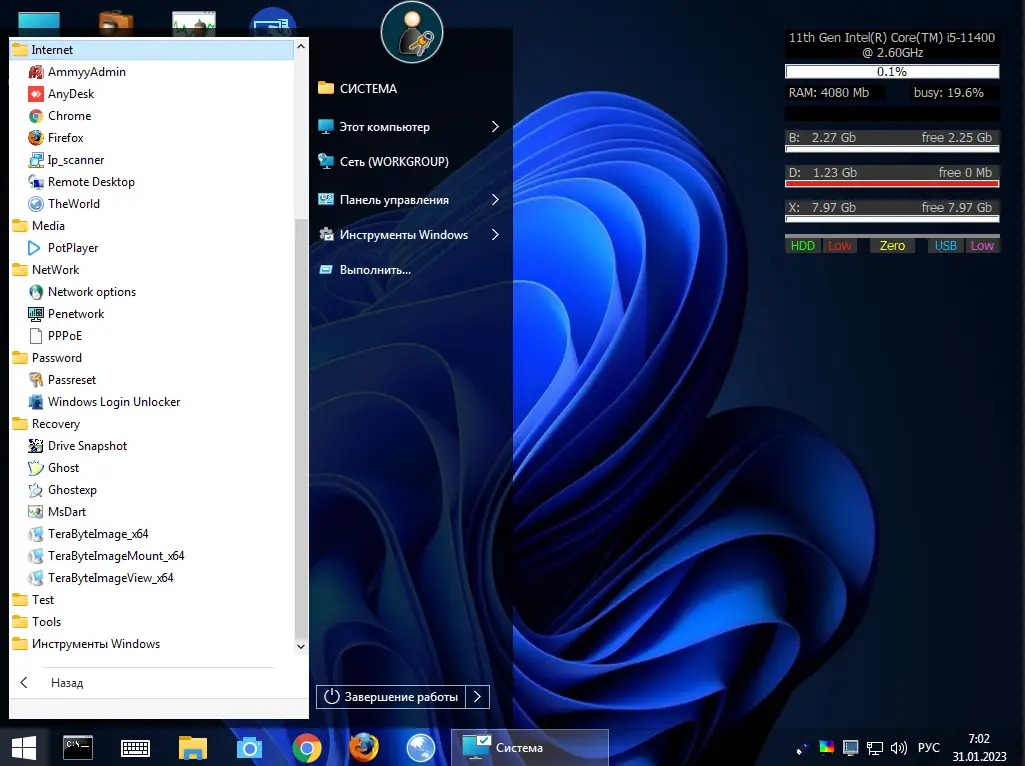 После загрузки с установочного носителя пользователь попадает в окружение, напоминающее стандартный интерфейс window, но с ограниченным набором процессов для повышения производительности. Через меню «Пуск» доступны все встроенные утилиты: менеджер разделов, реестра, терминал команд, а также сторонние инструменты для диагностики. Работа с дисками осуществляется через графический интерфейс или командную строку — в зависимости от предпочтений и задач. Поддерживаются операции клонирования, форматирования, изменения размера разделов и проверки дисков на ошибки.