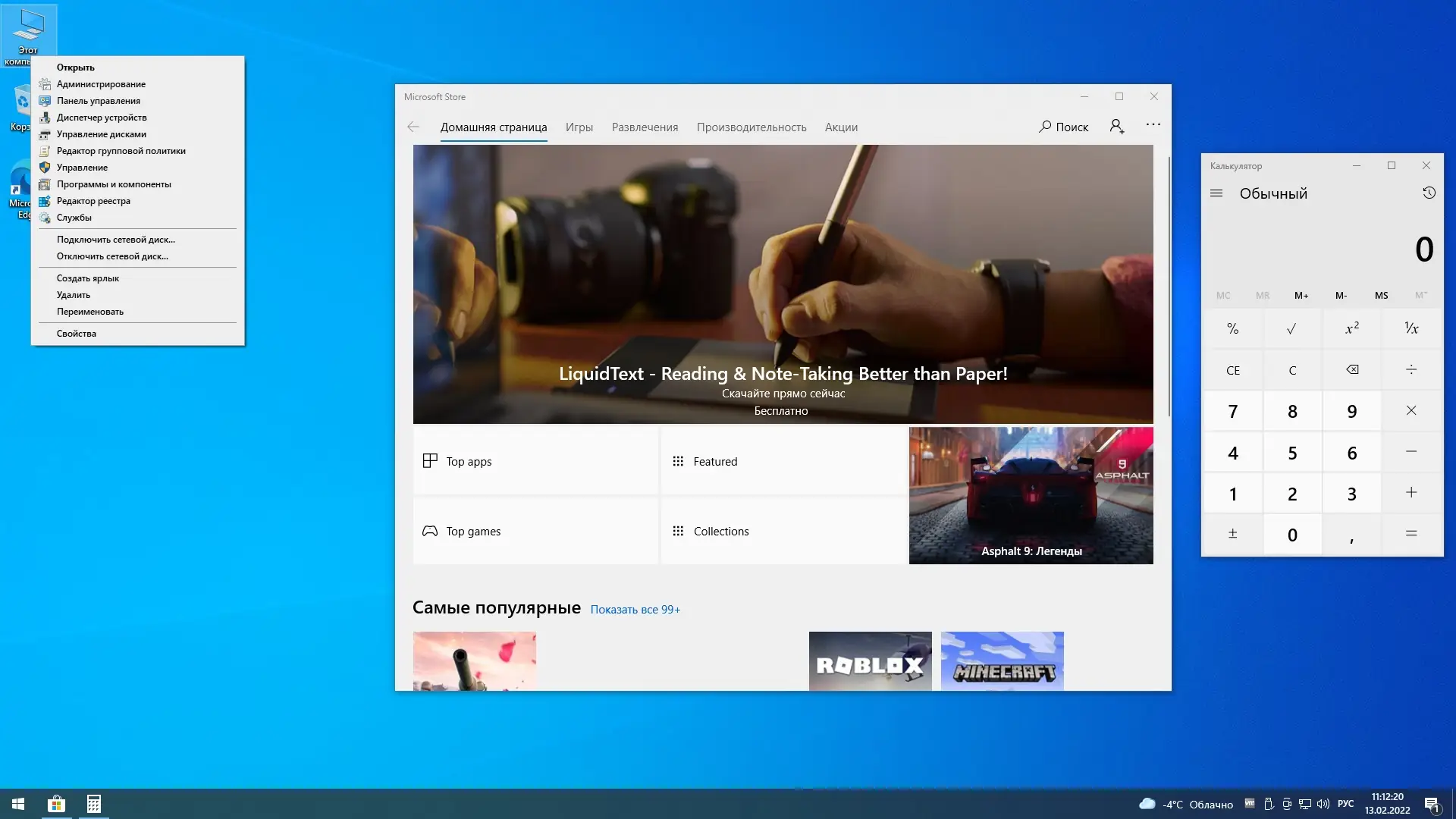 - Из состава удалены все модерн-приложения, кроме браузера Edge, Магазина и Калькулятора, что снижает нагрузку на ресурсы и ускоряет запуск системы.