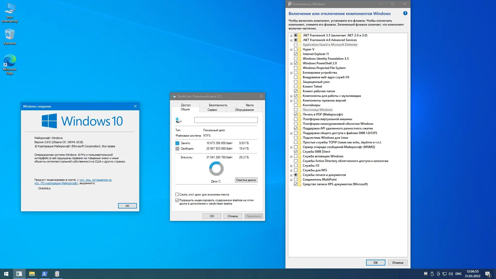 Данная сборка представляет собой модифицированную версию официального образа ru-ru_windows_10_business_editions_version_21h2_updated_march_2022_x64_dvd_fc332f46. Основой является операционная система Windows, прошедшая глубокую очистку и настройку для повышения стабильности и скорости работы. Удалены все модерн-приложения, кроме браузера Edge, что позволяет снизить нагрузку на систему и избежать фональных процессов, не несущих полезной функции. В системе отключена телеметрия, убраны ненужные службы, а интерфейс адаптирован под современные предпочтения пользователей.