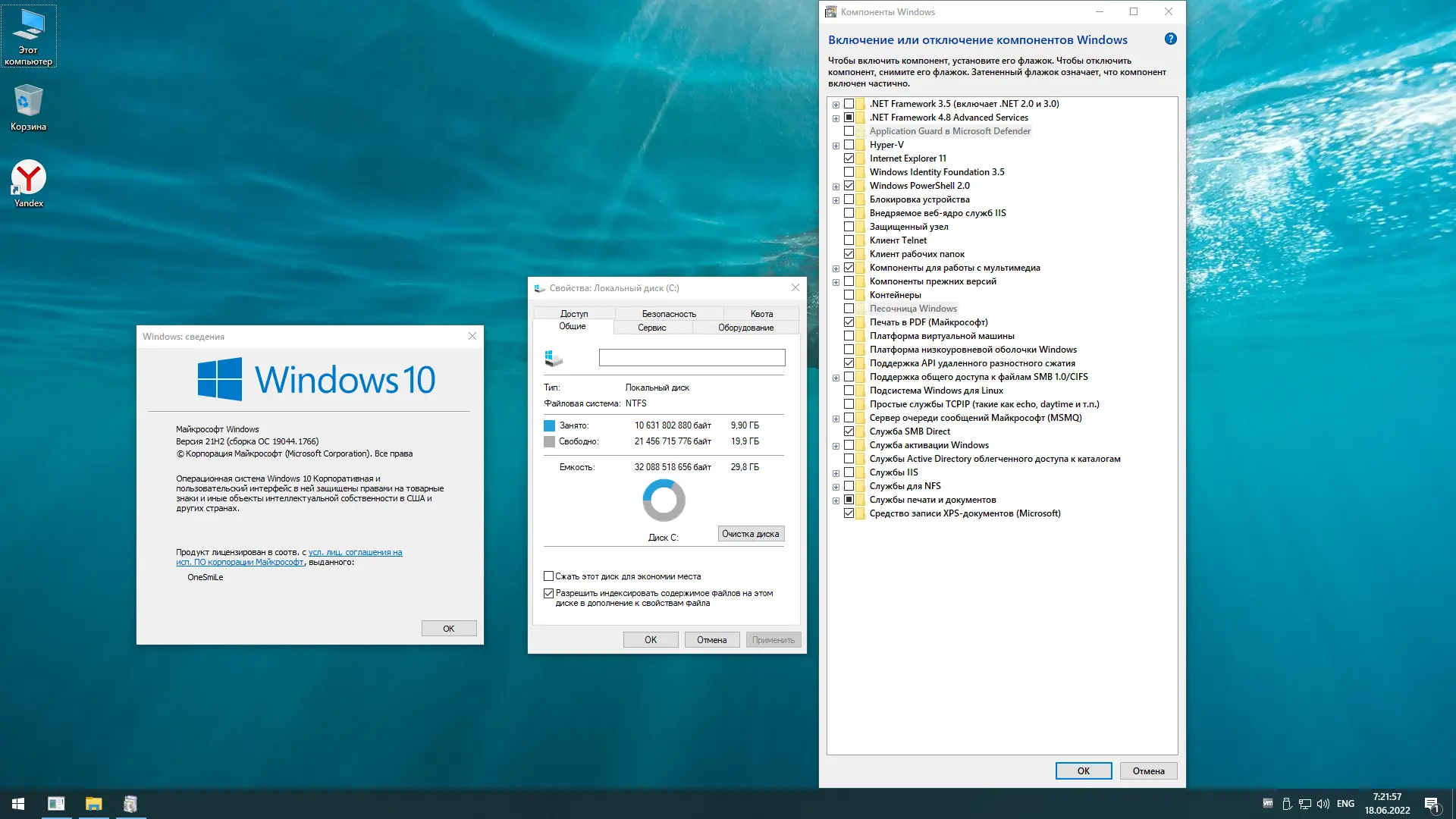 - Установлены полезные утилиты — 7-Zip и Яндекс, обеспечивающие архивацию и быстрый доступ к поиску.