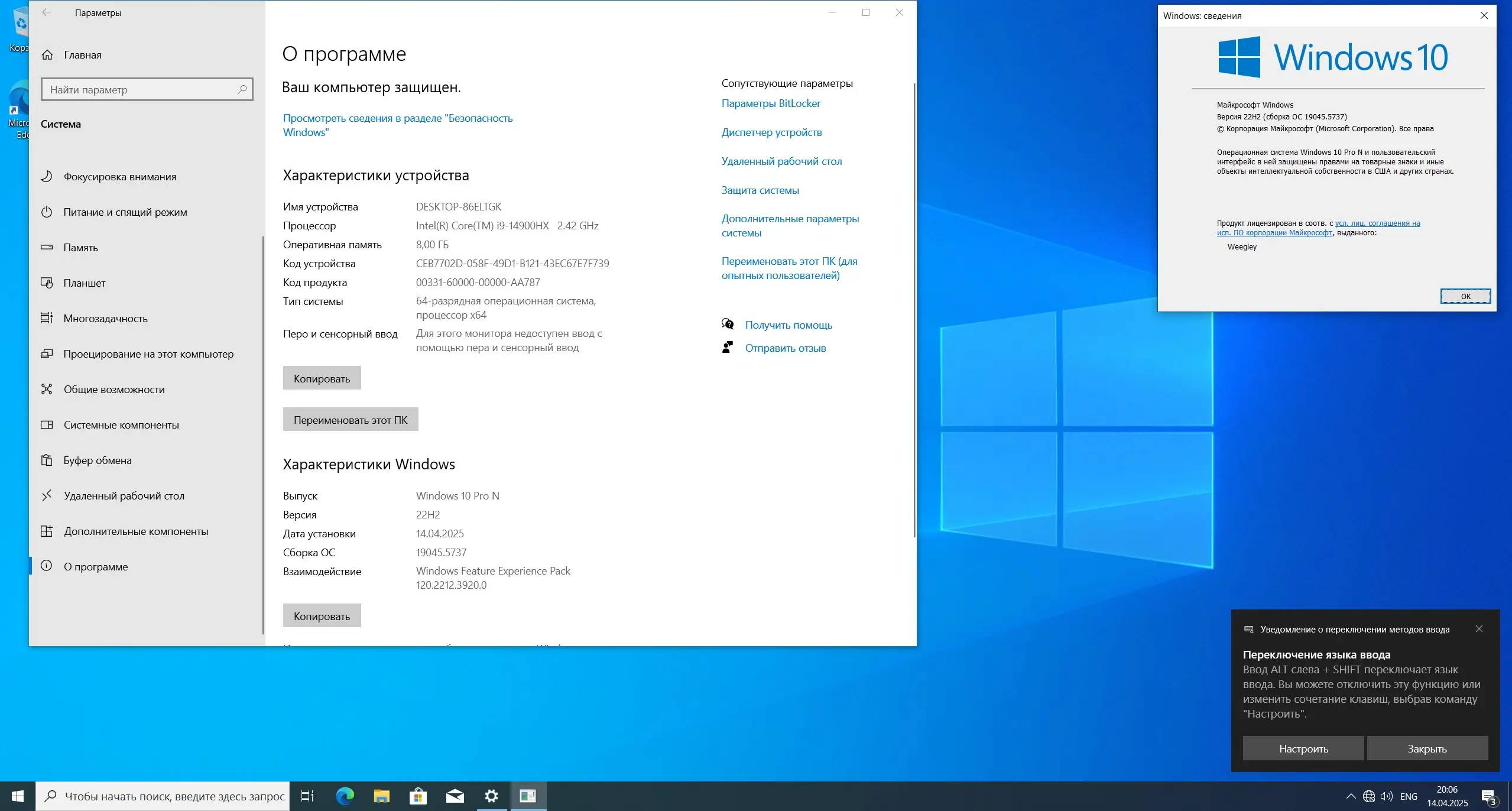 Представленная сборка операционной системы создана на базе лицензионных образов от Microsoft, что гарантирует её чистоту и соответствие стандартам. Интеграция всех накопительных обновлений по 8 апреля 2025 года позволяет использовать систему сразу после установки без необходимости длительного скачивания патчей. В состав включены .Net Framework 4.8.1 и 3.5, что обеспечивает поддержку широкого спектра приложений, включая устаревшие и специализированные программы.