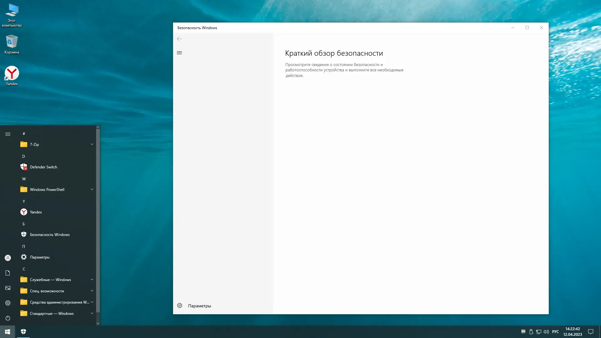 После установки пользователь получает доступ к полностью функциональной системе без необходимости дополнительных настроек. Все изменения вступают в силу сразу после первой загрузки. Для включения защитных функций, таких как Defender, используется встроенный переключатель — достаточно выбрать нужный параметр и перезагрузить компьютер. Установка магазина приложений и Xbox возможна через PowerShell командой wsreset -i при наличии интернет-подключения. Дополнительные утилиты, вроде 7-Zip и Яндекс-браузера, уже интегрированы в систему и готовы к использованию.