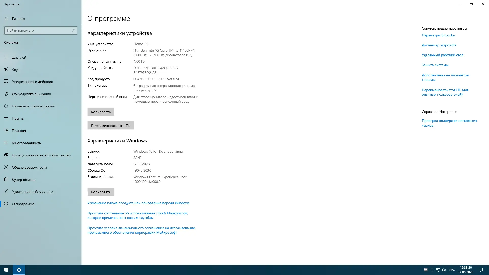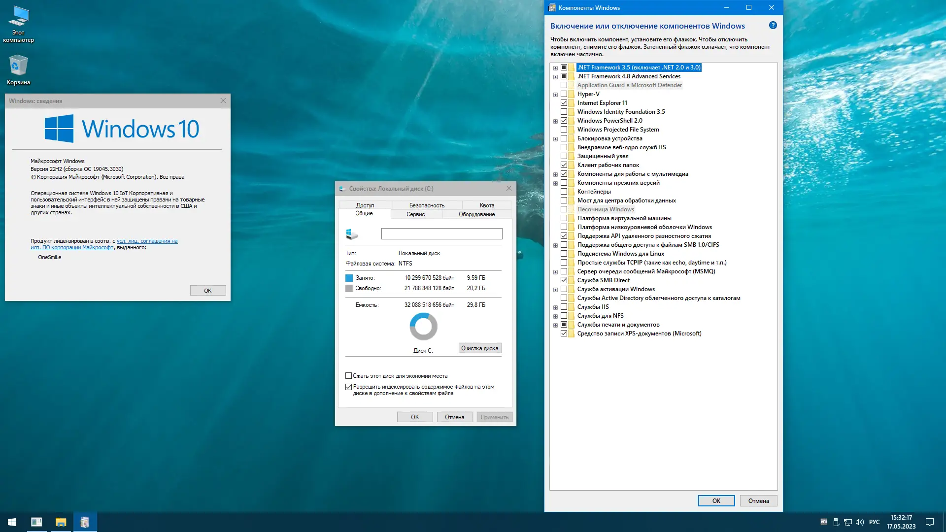 Сборка Windows 10 основана на официальном образе с обновлениями от мая 2023 года. Система оптимизирована для стабильной работы на компьютере: удалены ненужные компоненты, отключена телеметрия, настроены важные твики. Версия включает три редакции — Home, Pro и IoT Enterprise — и подходит для повседневного использования без лишних процессов в фоне.