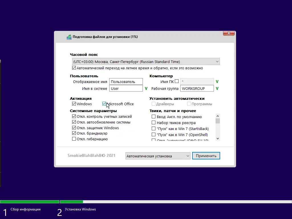 - Автоматическая активация через AAct с созданием задачи переактивации и исключения в Защитнике Windows.