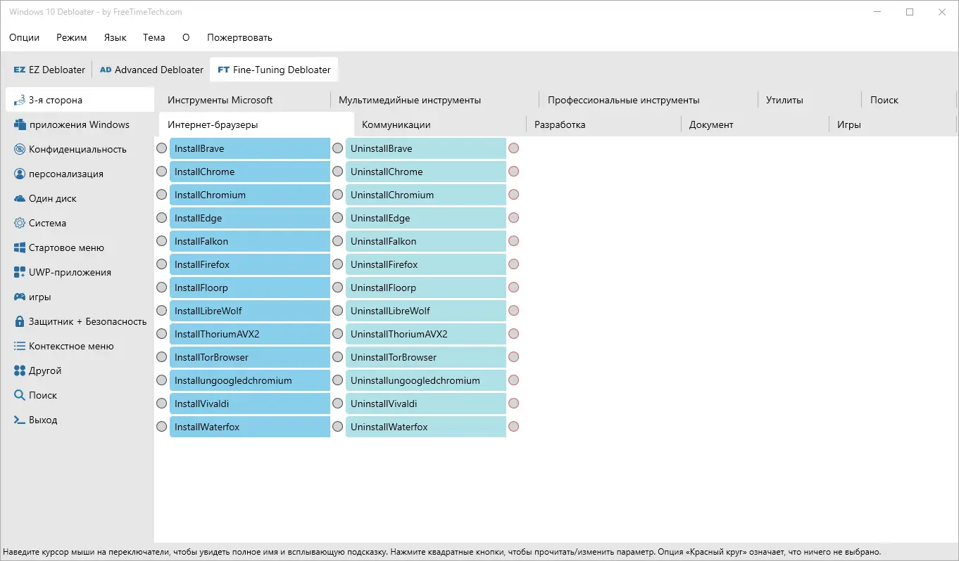 Debloater — это компактная утилита для тонкой настройки операционной системы, позволяющая отключать ненужные службы, удалять встроенные приложения и оптимизировать параметры конфиденциальности. С её помощью пользователь может легко настроить окружение под свои нужды, особенно в системах на базе windows 10, улучшив производительность и снизив фоновую активность.