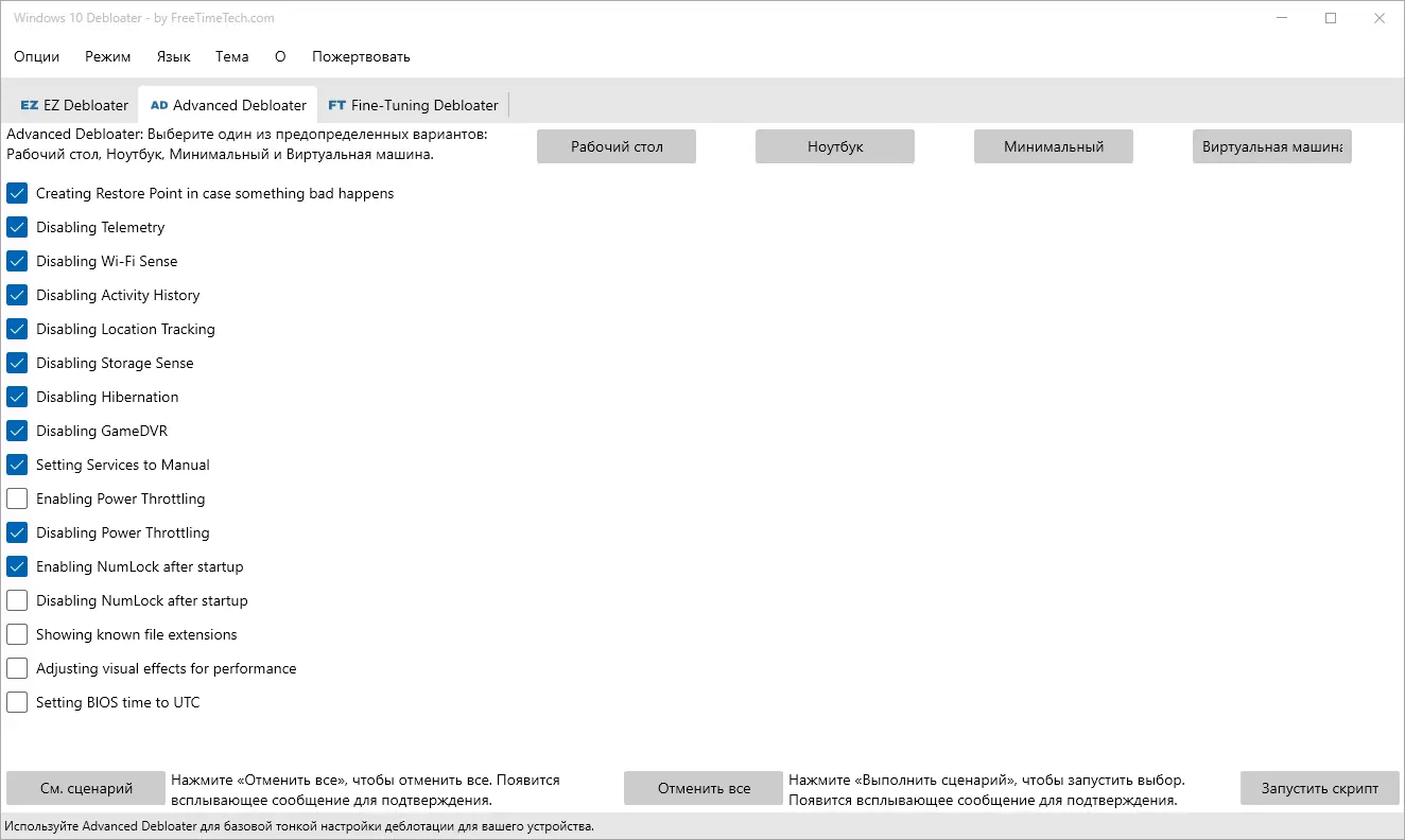 - Позволяет отключать службы, связанные с телеметрией и сбором данных, улучшая конфиденциальность пользователя.