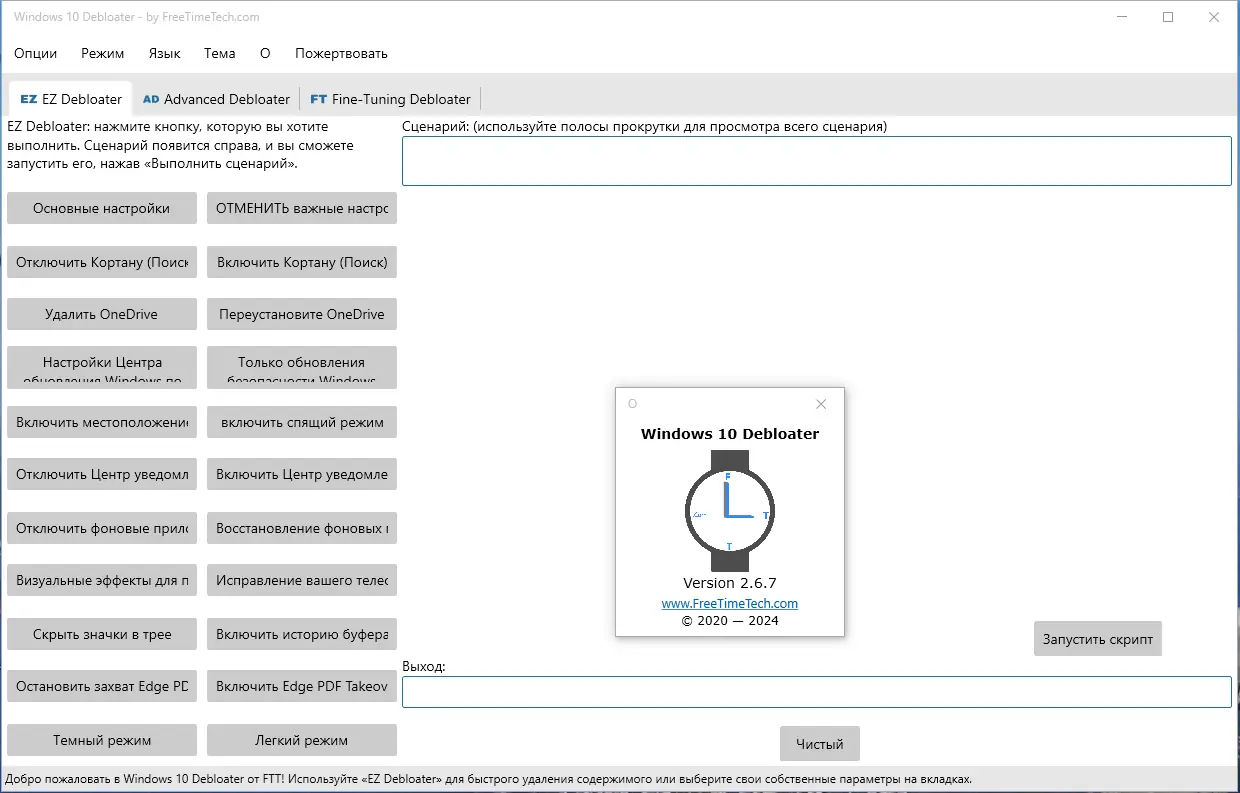 Каждое действие в Debloater прозрачно и контролируемо — пользователь всегда может просмотреть и при необходимости изменить скрипт перед его выполнением.