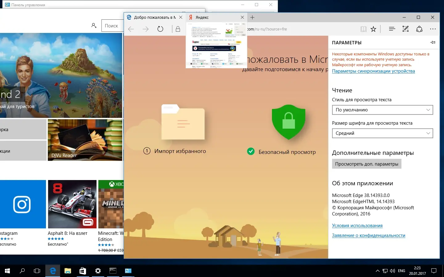 - Универсальные приложения запускаются в оконном режиме, совместимом с классическим интерфейсом рабочего стола.