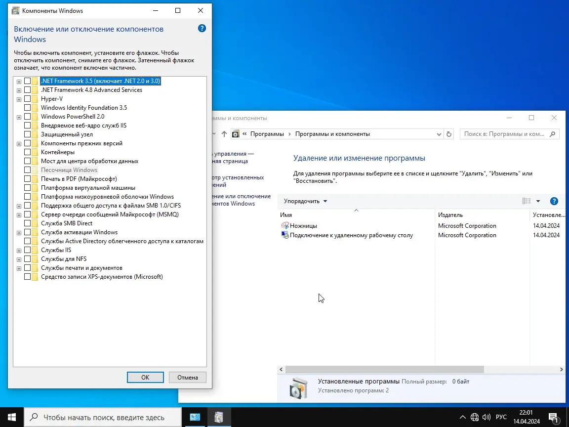 - Удалены избыточные компоненты, включая Microsoft Edge, Internet Explorer, Defender, SmartScreen, Cortana и игровые сервисы, чтобы снизить нагрузку на ресурсы.