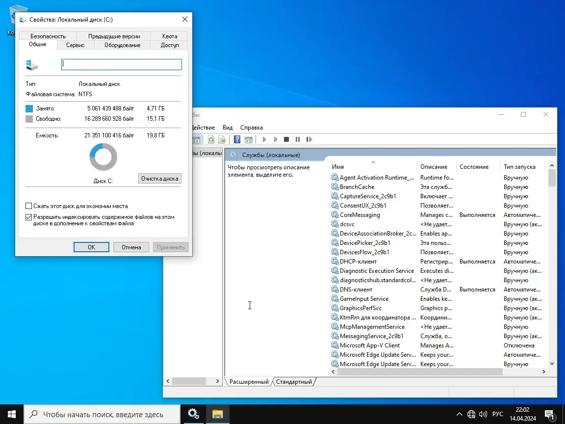 - Отключены фоновые процессы, такие как центр обновлений, брандмауэр, ClearType и зарезервированное хранилище, для максимальной оптимизации.