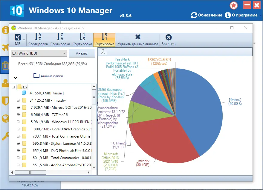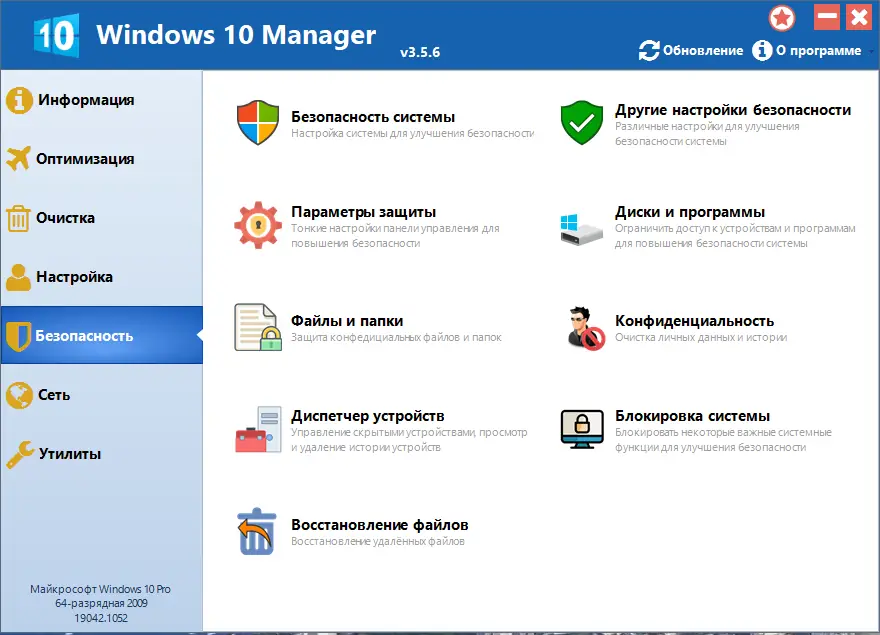 Работа с Windows 10 Manager