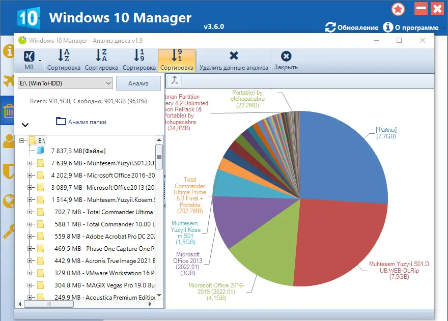 Работа с Windows 10 Manager