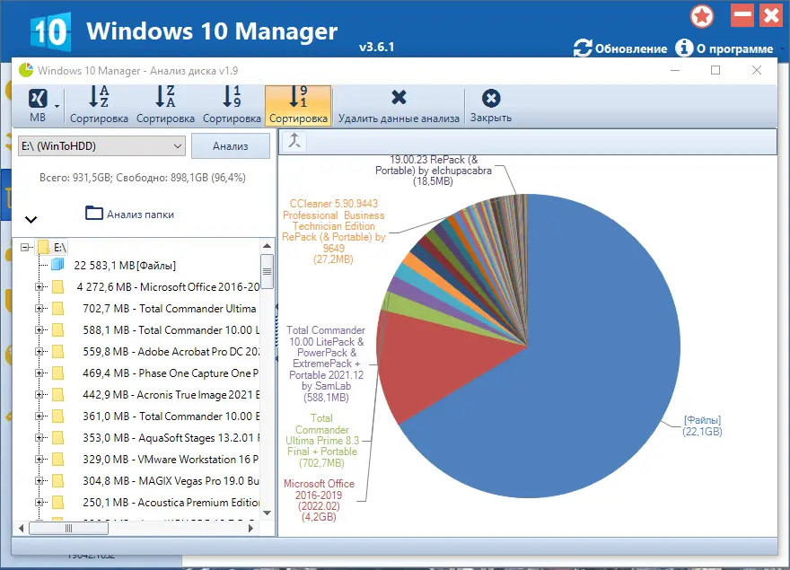 Работа с Windows 10 Manager