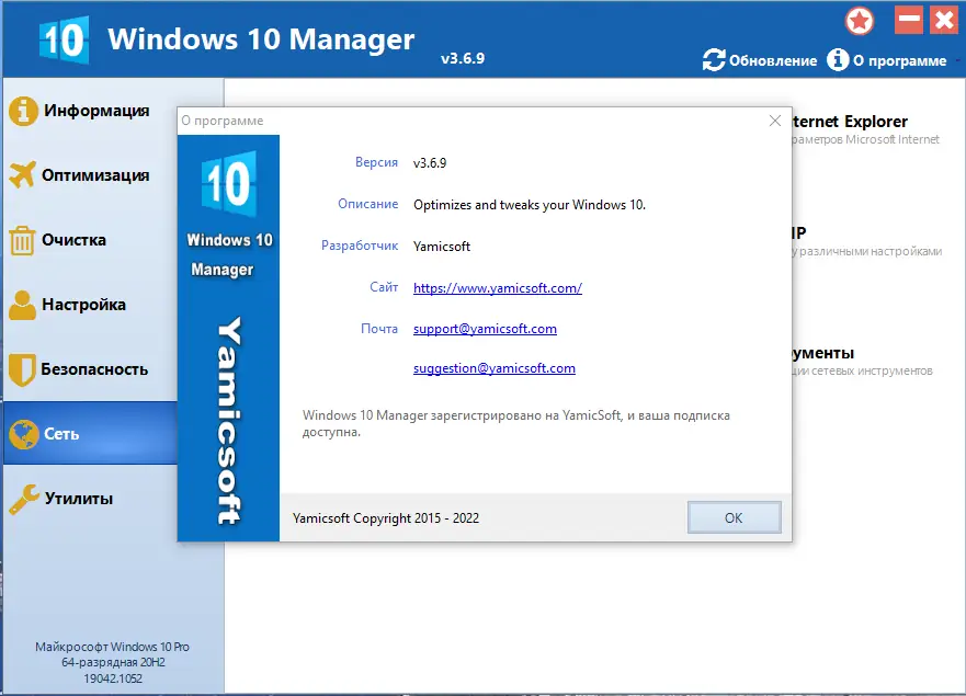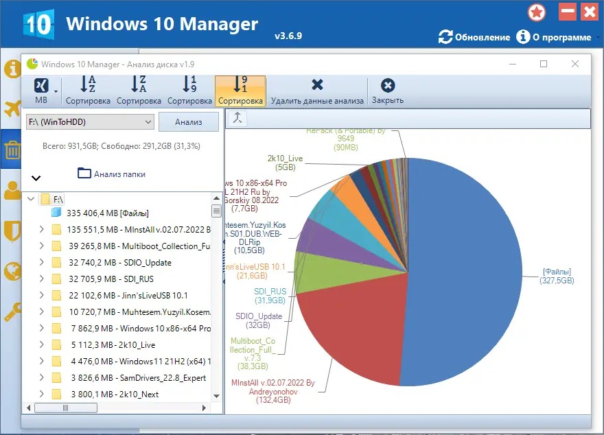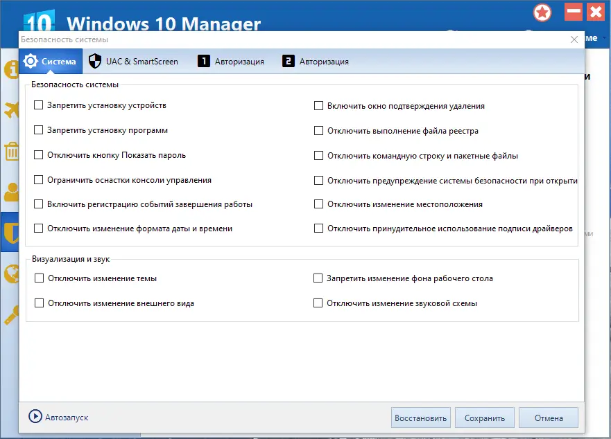 Работа с Windows 10 Manager