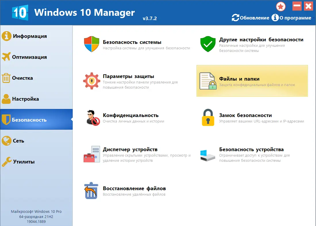 Работа с Windows 10 Manager
