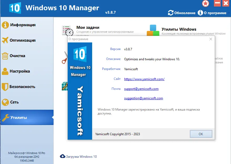 Windows 10 Manager — универсальная утилита для комплексной настройки, оптимизации и обслуживания операционной системы Microsoft Windows 10. Программа объединяет более сорока инструментов, помогающих ускорить работу системы, очистить реестр и диски, настроить параметры безопасности и персонализировать внешний вид. С её помощью можно эффективно устранять сбои, повышать стабильность и контролировать производительность компьютера.