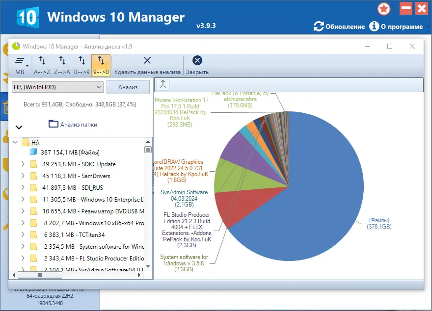 Работа с Windows 10 Manager