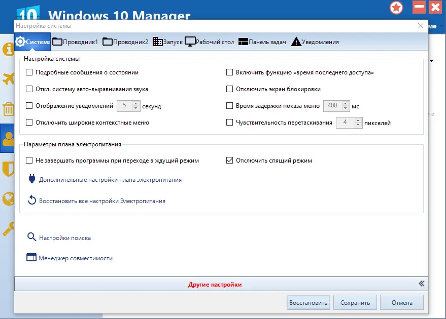 Работа с Windows 10 Manager
