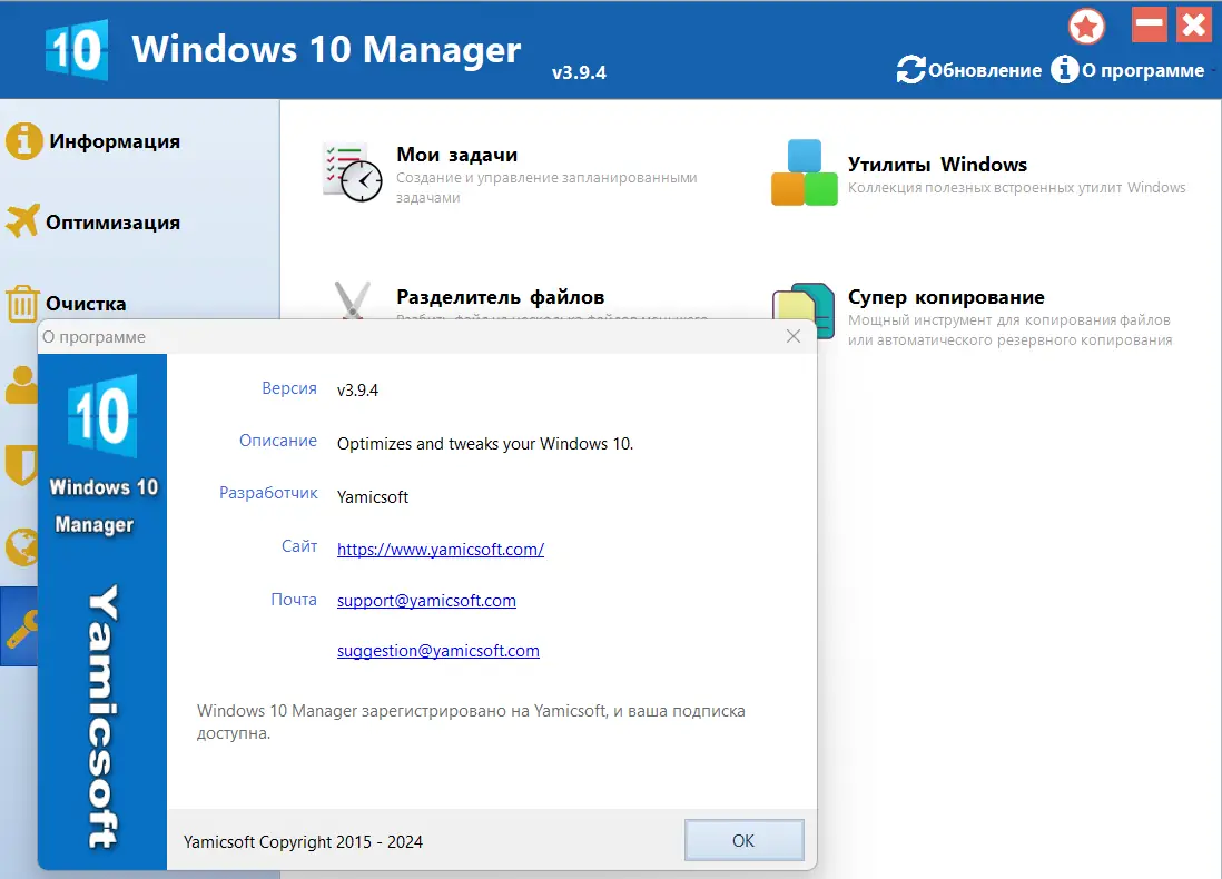 Windows 10 Manager — комплексная утилита для настройки, оптимизации и обслуживания операционной системы Microsoft Windows 10. Программа объединяет более сорока инструментов, позволяющих ускорить работу системы, очистить реестр, настроить автозагрузку, повысить безопасность и персонализировать интерфейс. Решение подходит как для новичков, так и для опытных пользователей, стремящихся получить максимальную производительность от своей системы.