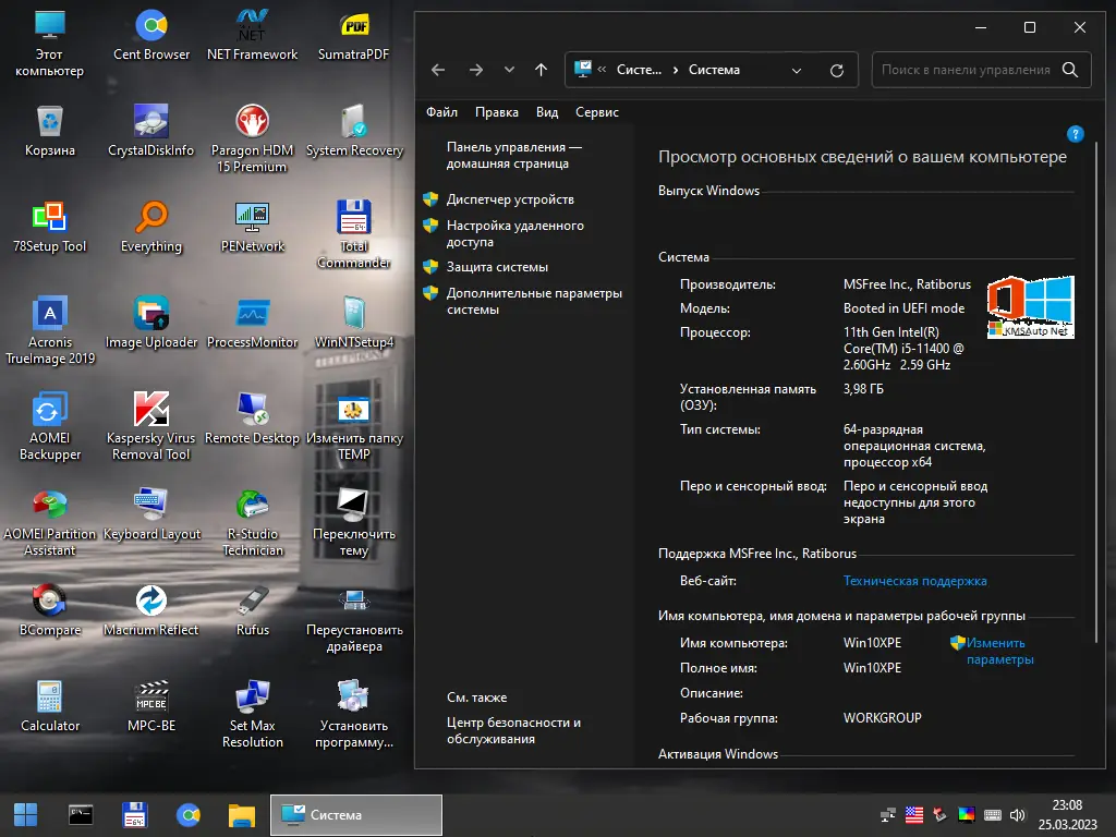 Windows 10 PE представляет собой специализированный загрузочный диск, созданный для выполнения технических задач на уровне системы. Он работает от имени администратора и поддерживает запуск утилит от имени системной учетной записи через контекстное меню. Сборка построена на архитектуре x64 и разработана на основе Windows 11, что обеспечивает совместимость с современным оборудованием.