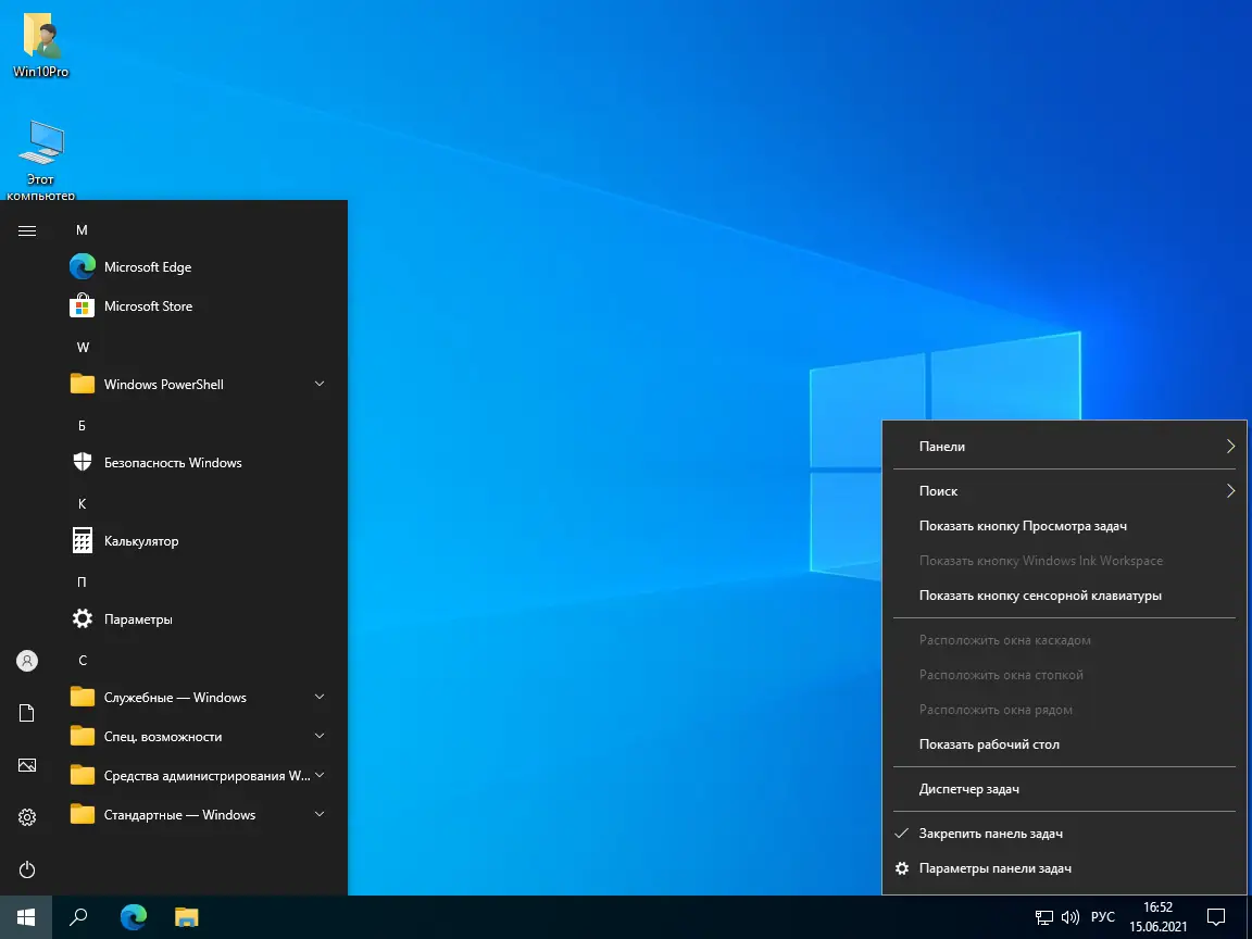 - Удалены OneDrive, Xbox, Cortana и все ненужные Metro-приложения, кроме Store и Калькулятора