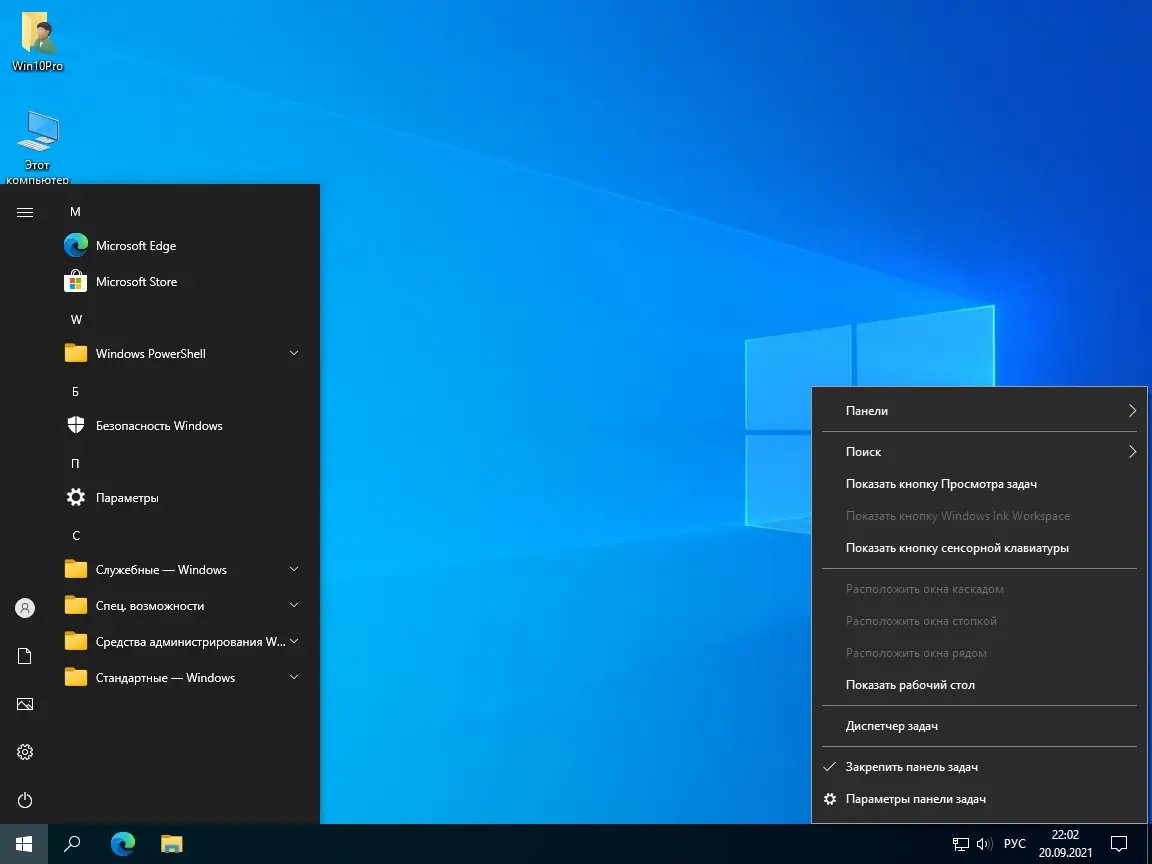 - Система основана на официальном образе Windows 10 Pro 21H1, что гарантирует совместимость и стабильность работы.