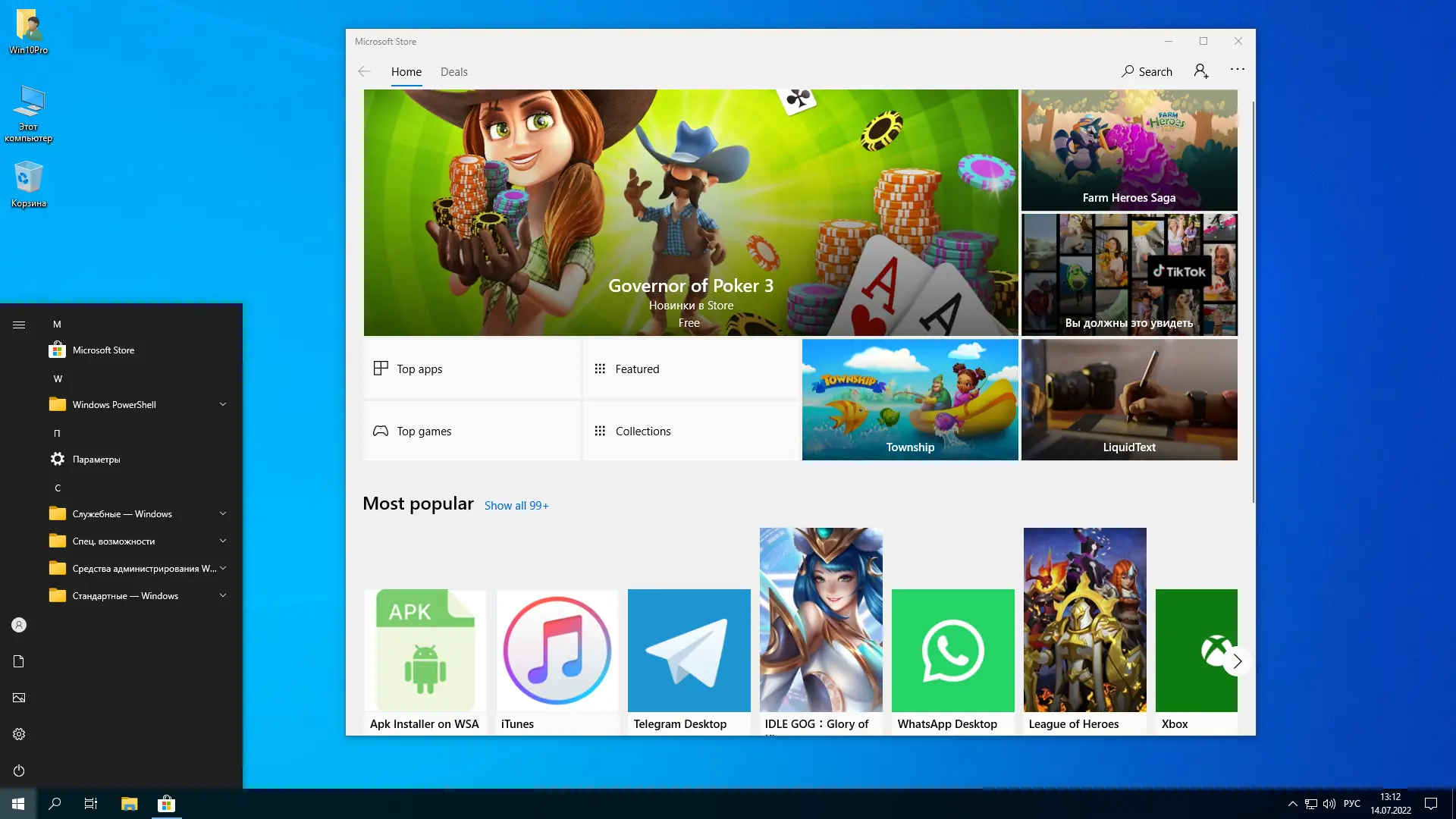 - Удалены приложения магазина Microsoft, за исключением самого магазина