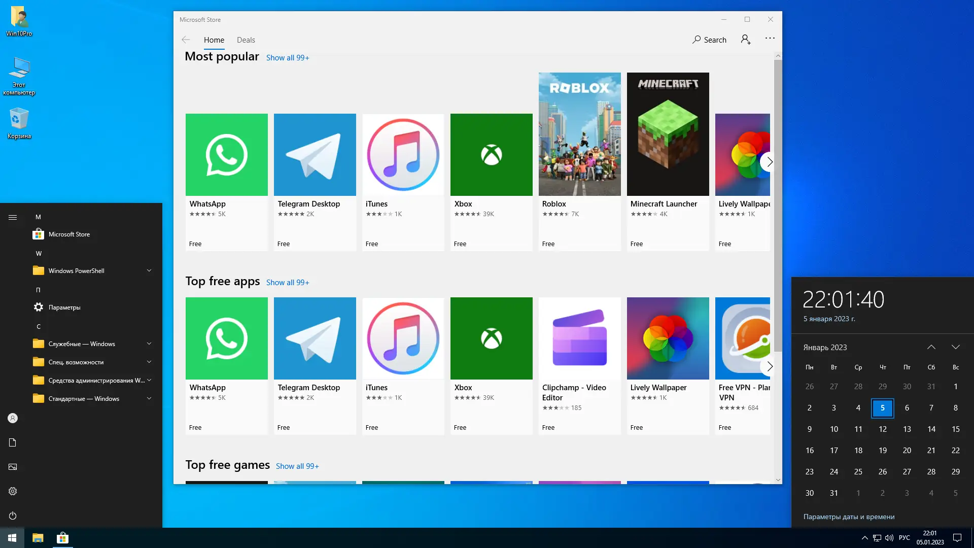 - Удалены ненужные приложения Microsoft Store, такие как OneDrive, Кортана, Xbox и Edge