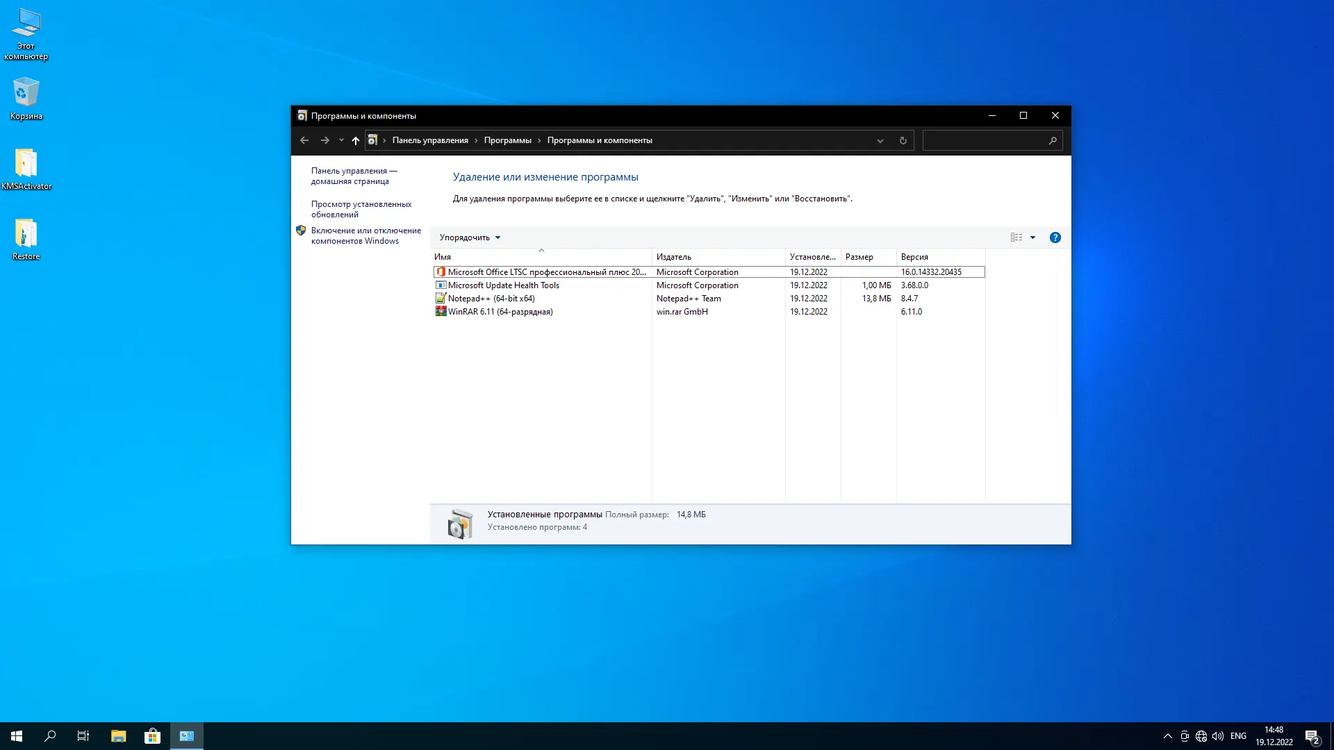 - Установлен полный пакет Microsoft Office 2021 LTSC Pro Plus с автоматической активацией, а также полезные утилиты: WinRAR и Notepad++.