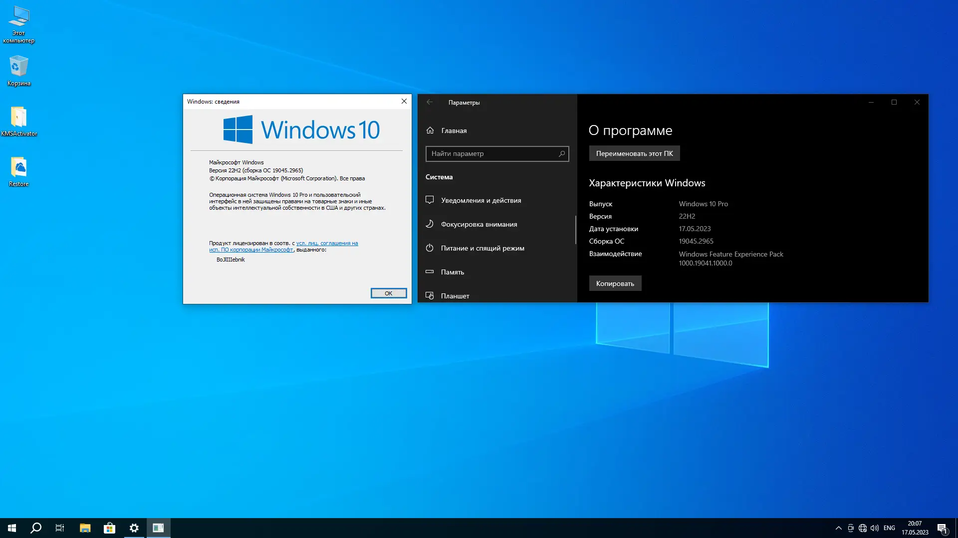 - Система собрана на основе версии 22H2 с номером сборки 19045.2965 и поддерживает интерфейс на русском и английском языках.