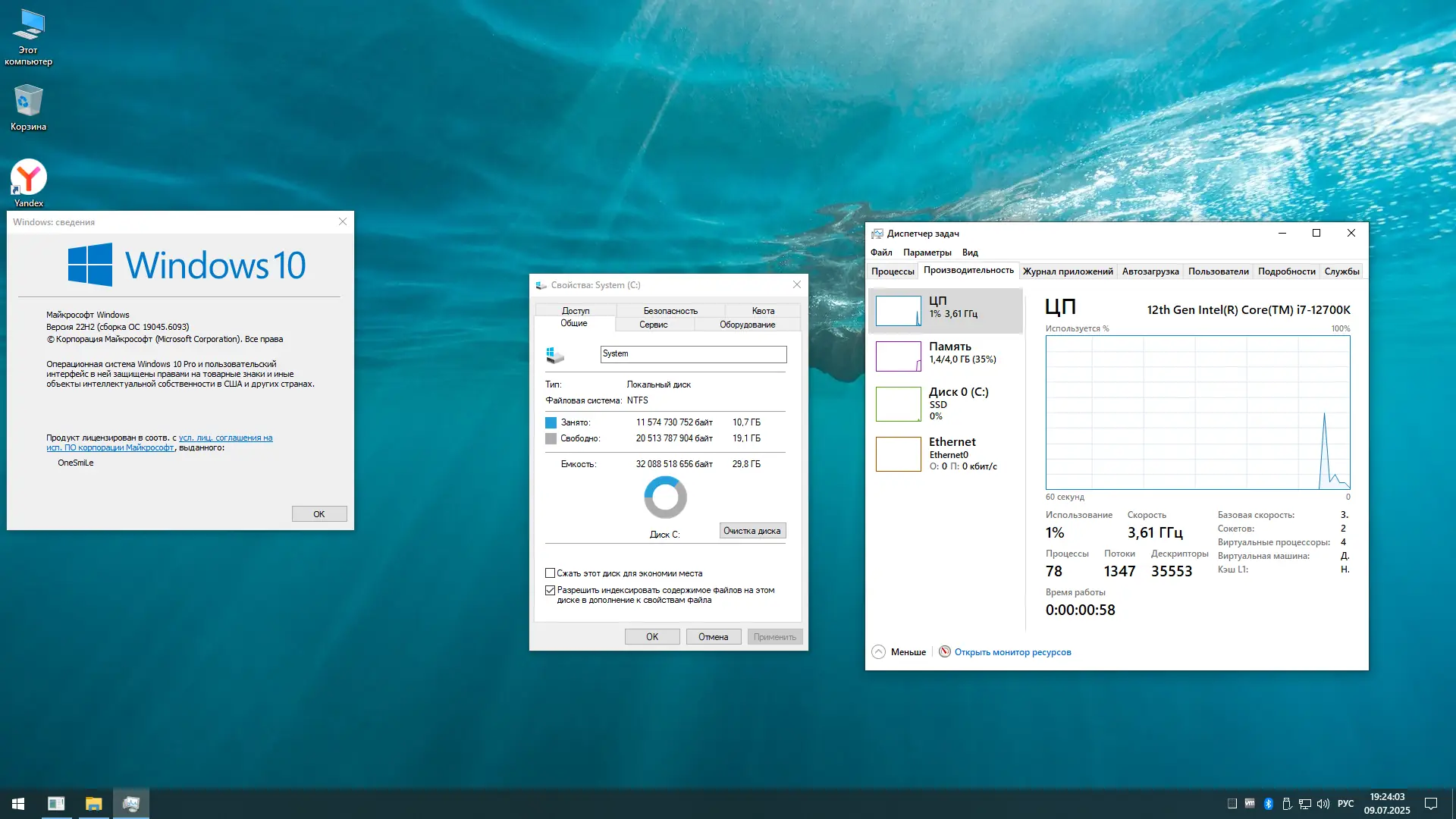 Данный релиз представляет собой модифицированную сборку операционной системы, основанную на аутентичных образах Windows 10 Business Editions и Enterprise LTSC 2021. Система была обновлена по 10 июня 2025 года, что обеспечивает совместимость с современным программным обеспечением и защиту от актуальных уязвимостей. Все изменения выполнены с сохранением стабильности ядра и функциональности критически важных компонентов. Образ упакован в формат ESD с использованием DISM, что гарантирует целостность данных и быструю установку.