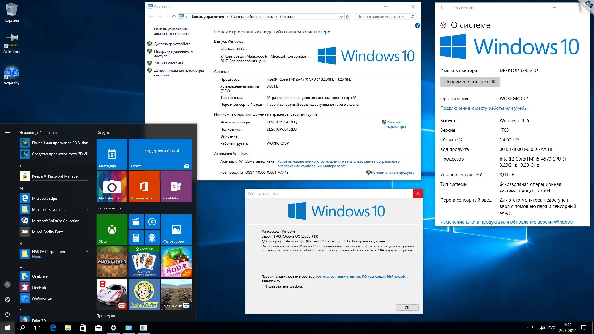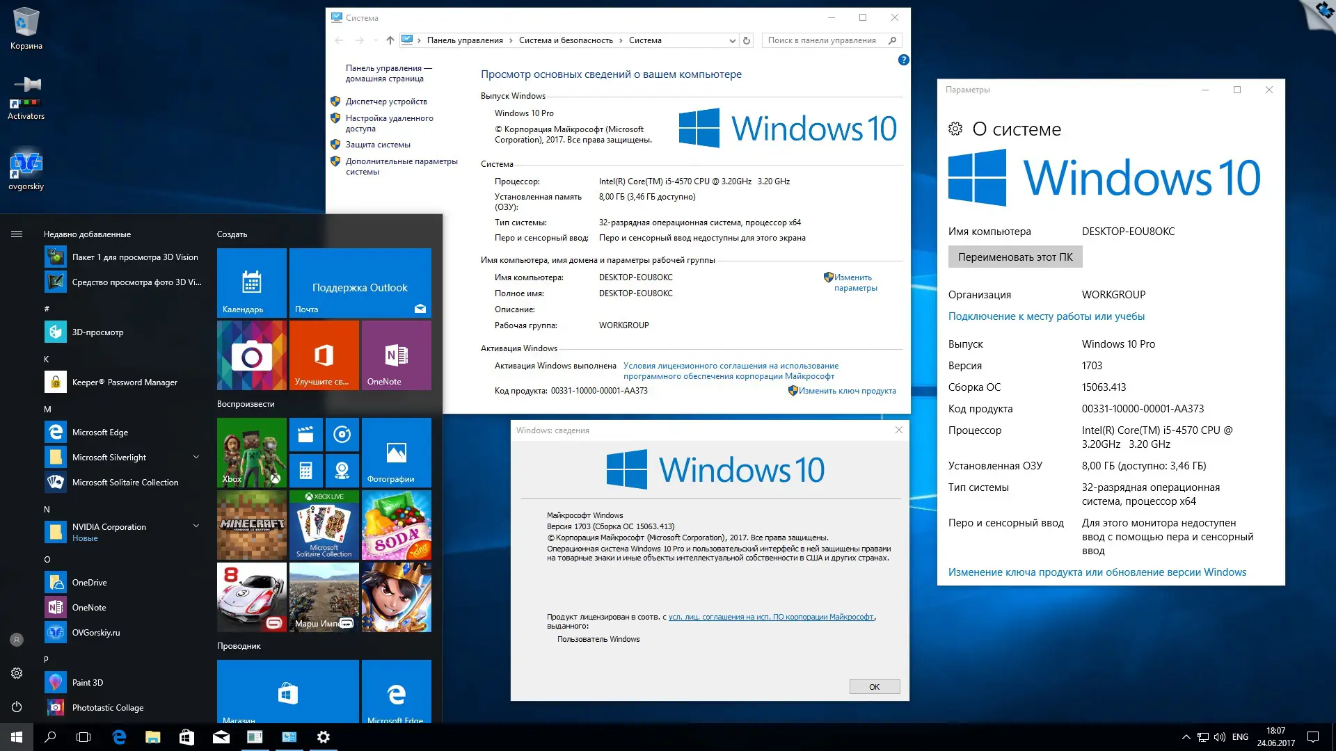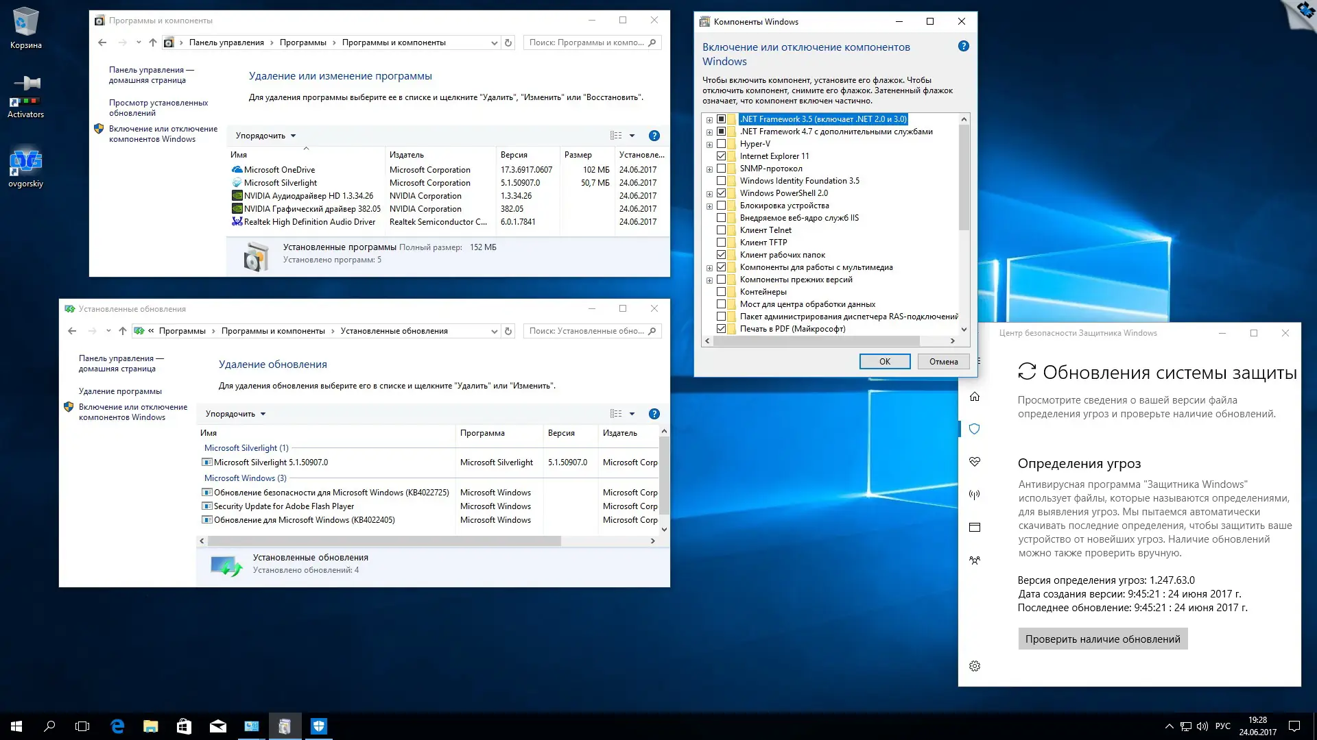 Данный образ операционной системы представляет собой официальную версию Windows 10 Professional на русском языке, подготовленную по стандартам Microsoft для широкого использования. Сборка объединяет 32-битную и 64-битную редакции в один DVD9-образ, что делает её универсальной для разных аппаратных конфигураций. Все компоненты взяты из источников VL, включая оригинальные ISO-файлы SW_DVD5_Win_Pro_10_1703_32BIT_Russian_MLF_X21-36763 и SW_DVD5_Win_Pro_10_1703_64BIT_Russian_MLF_X21-36764. Интеграция выполнена с помощью официальных инструментов ADK, что гарантирует совместимость и стабильность. В систему включены обновления по 14 июня 2017 года, а также отдельный пакет для защитника Windows от 24 июня. Никаких сторонних изменений, кроме активации .NET Framework 3.5 и установки Silverlight, не производилось.