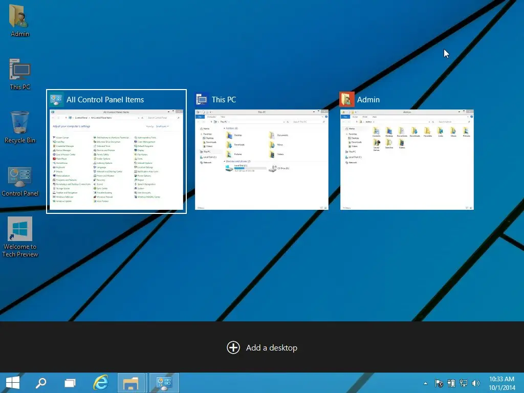 - Улучшенная многозадачность с функцией виртуальных рабочих столов и Task View.