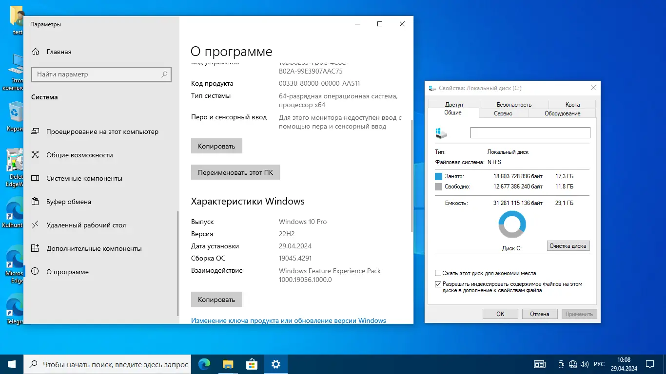 Оптимизированная сборка операционной системы на базе официального образа Windows 10 версии 22H2 с обновлениями от апреля 2024 года. Включает несколько редакций с предустановленными компонентами, отключёнными службами и настройками для повышения производительности. Удалены ненужные приложения, сжата папка WinSxS, интегрирован .NET Framework, отключены рекомендации и обновления. Подходит для установки на компьютер с возможностью создания локальной учётной записи.