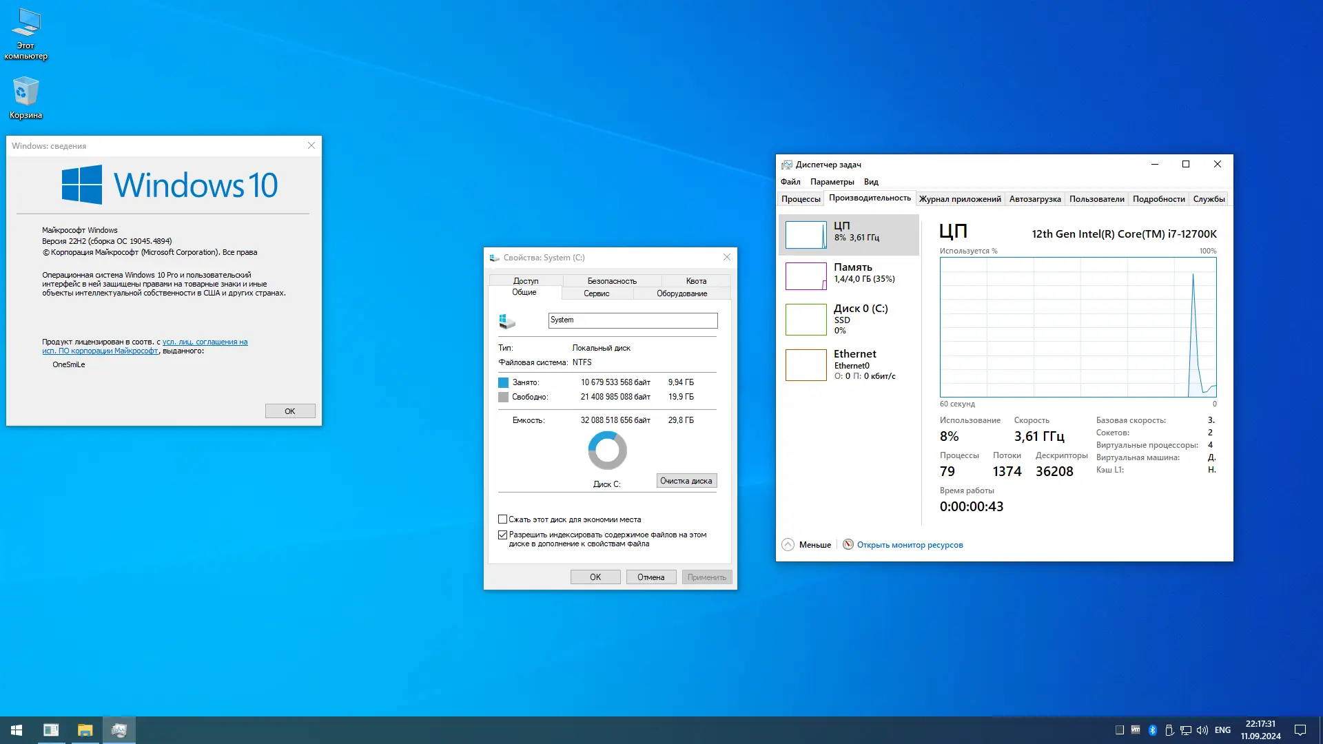 Сборка Windows 10 на основе официальных образов с глубокой оптимизацией и удалением встроенных приложений, телеметрии и ненужных компонентов. Система включает три редакции: Home, Professional и Enterprise LTSC с настройками для повышения производительности и приватности. Подходит для установки на современные и устаревшие компьютеры с поддержкой архитектур x86 и x64.