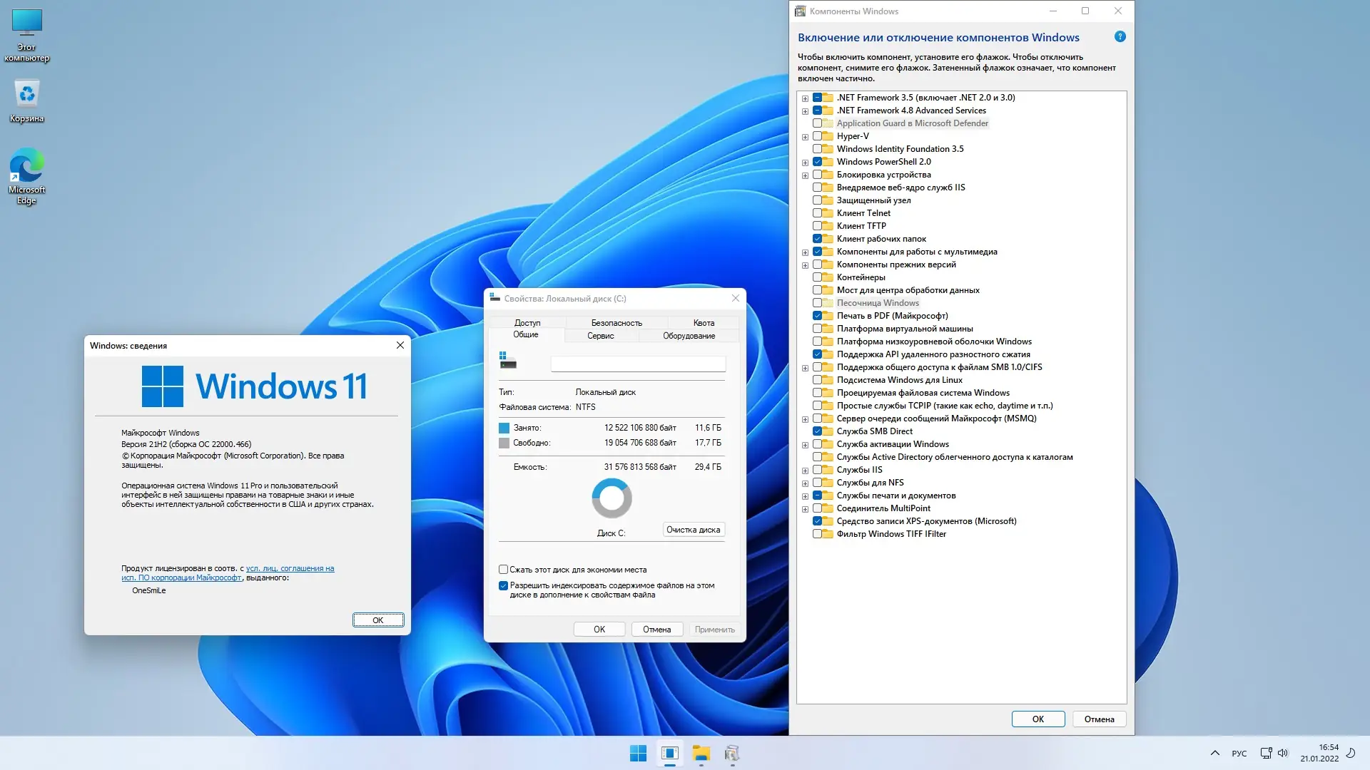Это модифицированная сборка операционной системы Windows 11, созданная на основе официального образа ru-ru_windows_11_business_editions_updated_dec_2021_x64_dvd_76ce2854. В системе сохранён ключевой функционал, при этом удалены современные приложения, не несущие критической нагрузки, за исключением браузера Edge. Система включает две редакции — Windows 11 PRO и Windows 11 Enterprise, что расширяет возможности её использования в разных условиях. Образ упакован в формат ESD для уменьшения размера и оптимизации процесса записи.