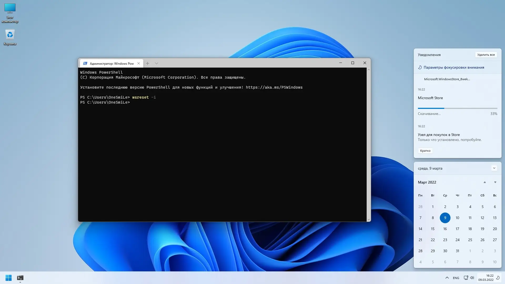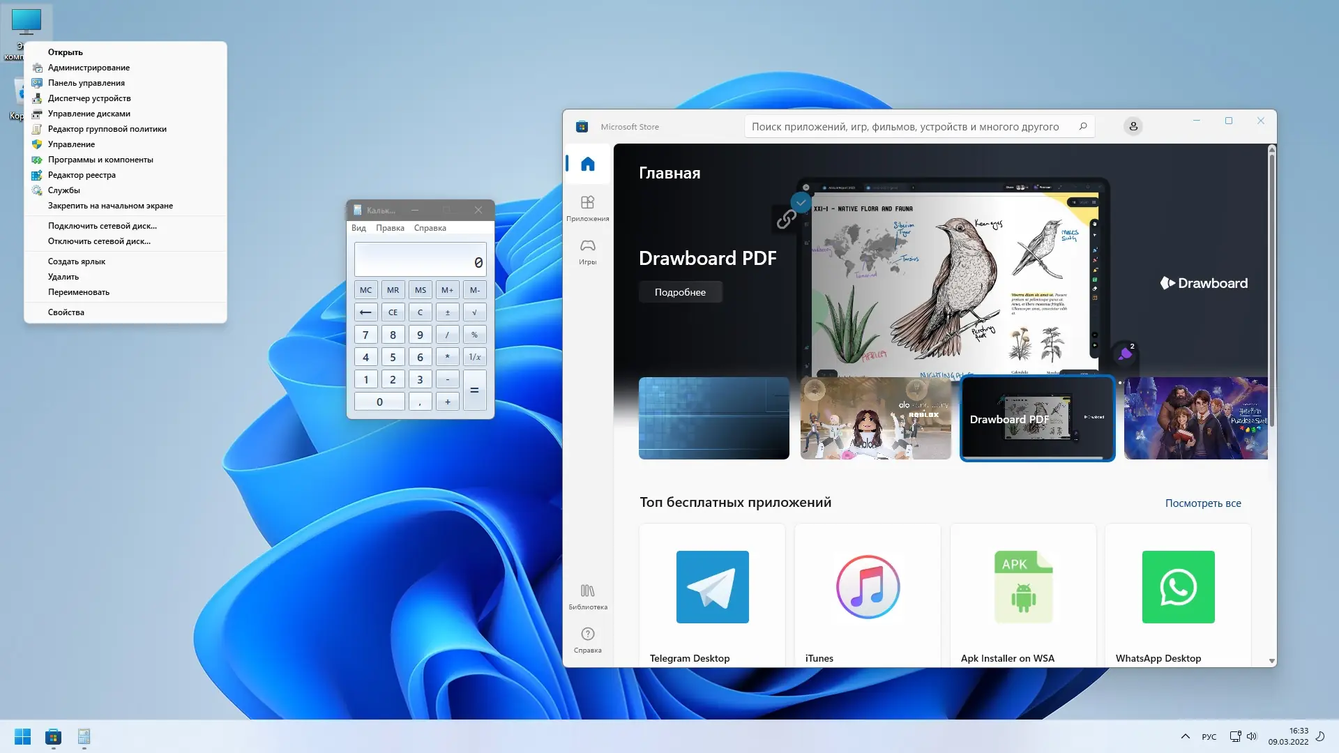 После установки система готова к использованию. Для восстановления магазина приложений необходимо открыть терминал и ввести команду wsreset -i, после чего система автоматически загрузит и настроит приложение. Контекстное меню возвращено к классическому виду, что упрощает доступ к часто используемым функциям. В меню «Этот компьютер» добавлены быстрые ссылки на диспетчер устройств, редактор реестра и другие системные утилиты. Автоматическая установка драйверов отключена, чтобы пользователь мог контролировать процесс обновления оборудования через Центр обновлений.