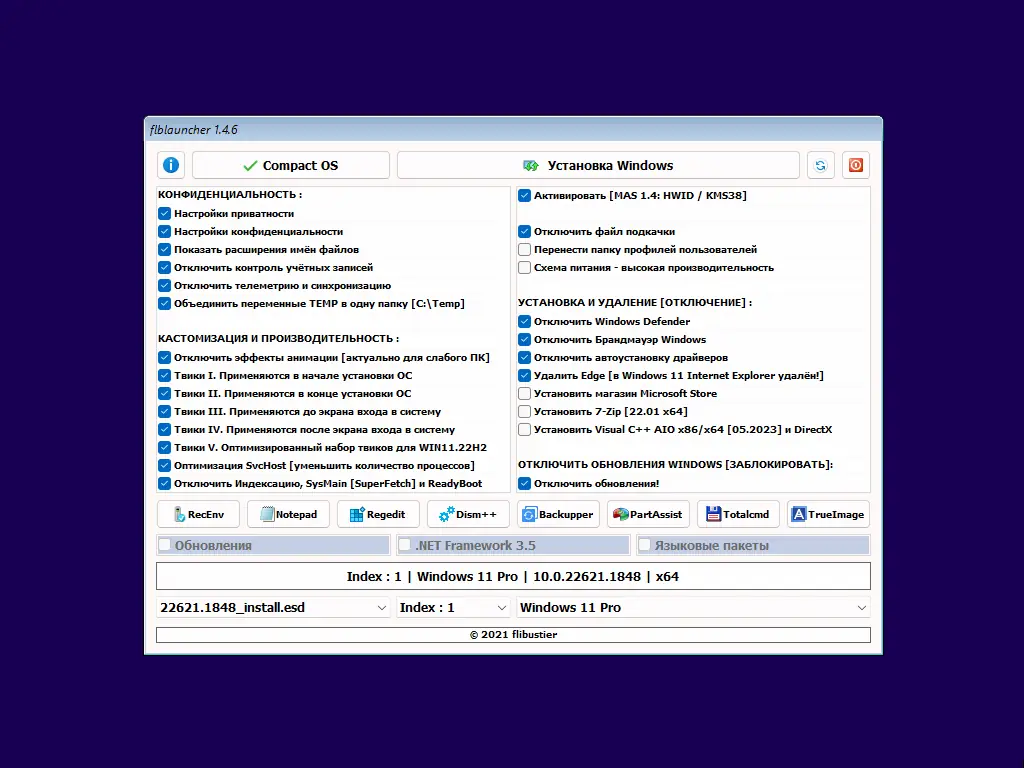 - Сборка основана на версии 22H2 с номером сборки 22621 и включает все актуальные исправления на момент выпуска.