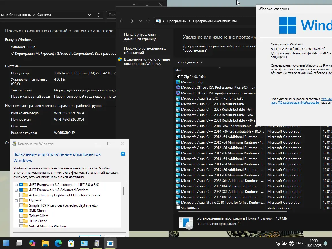 - Интегрированы .NET Framework 3.5, Visual C++ Runtimes и DirectX 9.0c для совместимости с устаревшими приложениями