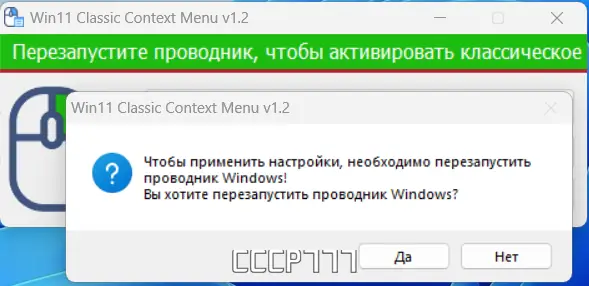 - Быстрое восстановление классического контекстного меню без правки реестра.