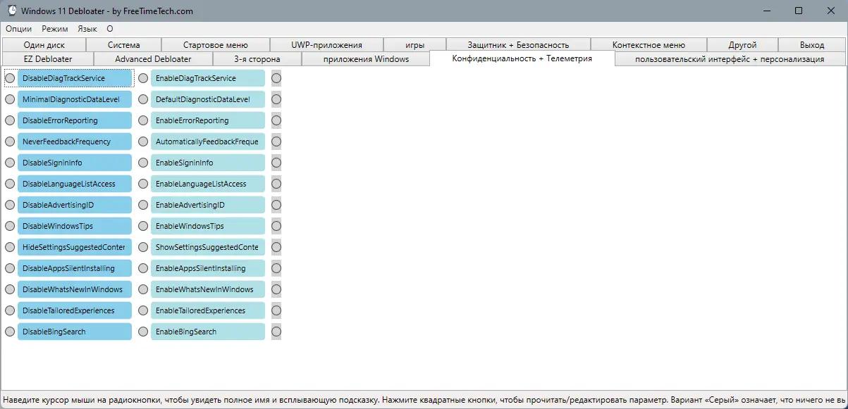 - Полная настройка параметров конфиденциальности и отключение телеметрии.