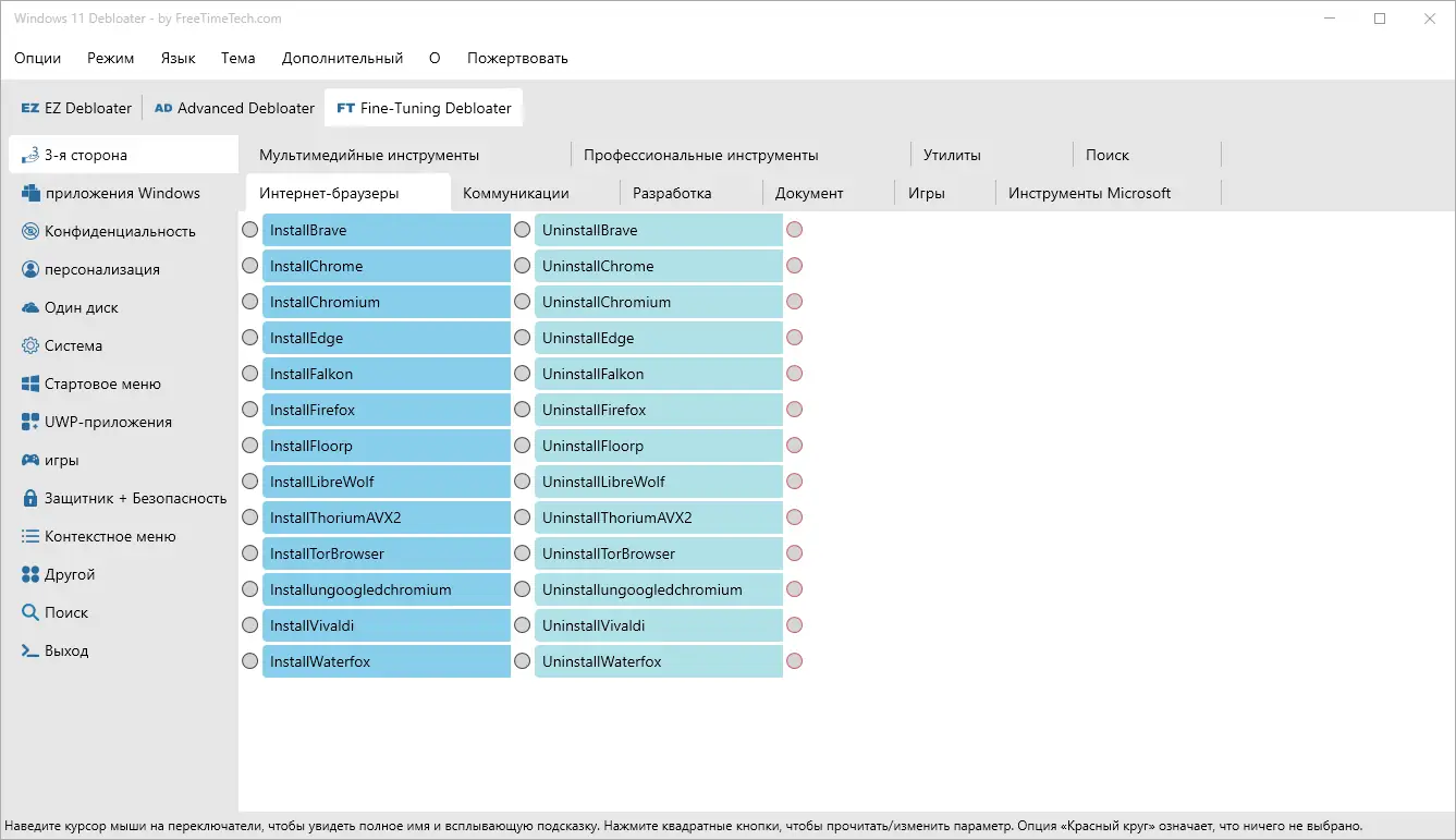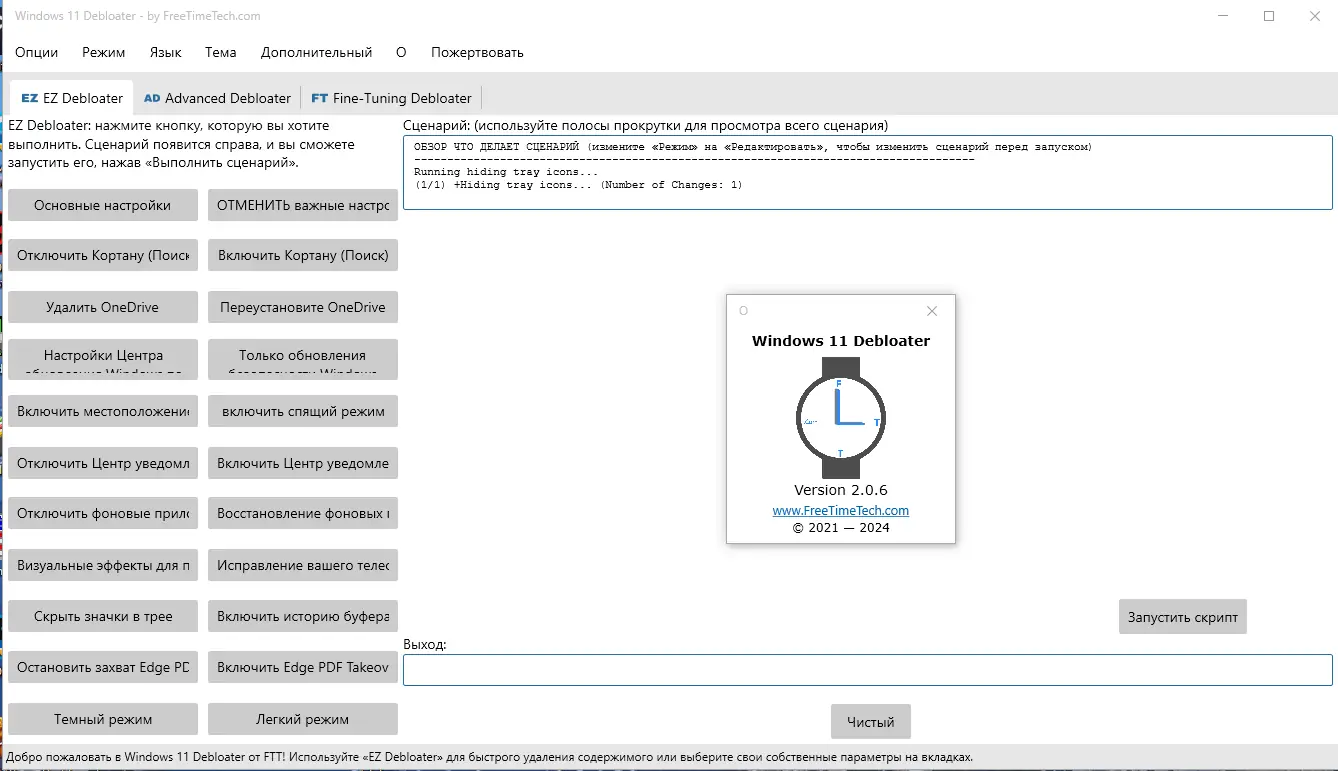 Debloater — это компактная утилита для глубокой настройки и оптимизации операционной системы windows 11. С её помощью можно удалить ненужные приложения, отключить телеметрию, настроить приватность и ускорить работу системы.