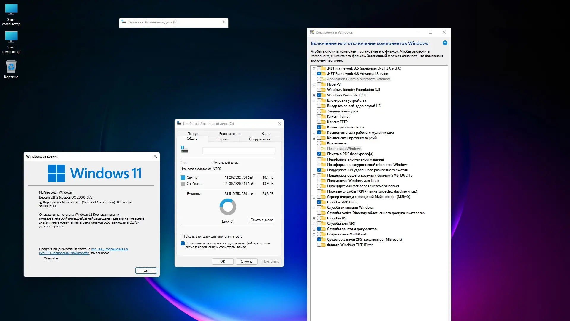Сборка операционной системы создана на базе оригинального образа ru-ru_windows_11_business_editions_updated_nov_2021_x64_dvd_f1facebf, что гарантирует стабильность и совместимость с современным программным обеспечением. Исключены все модерн-приложения, за исключением браузера Microsoft Edge, который остаётся в системе для обеспечения работы веб-сервисов. Windows Defender присутствует, но по умолчанию отключён, при этом в контекстное меню кнопки «Пуск» добавлен быстрый переключатель его состояния.